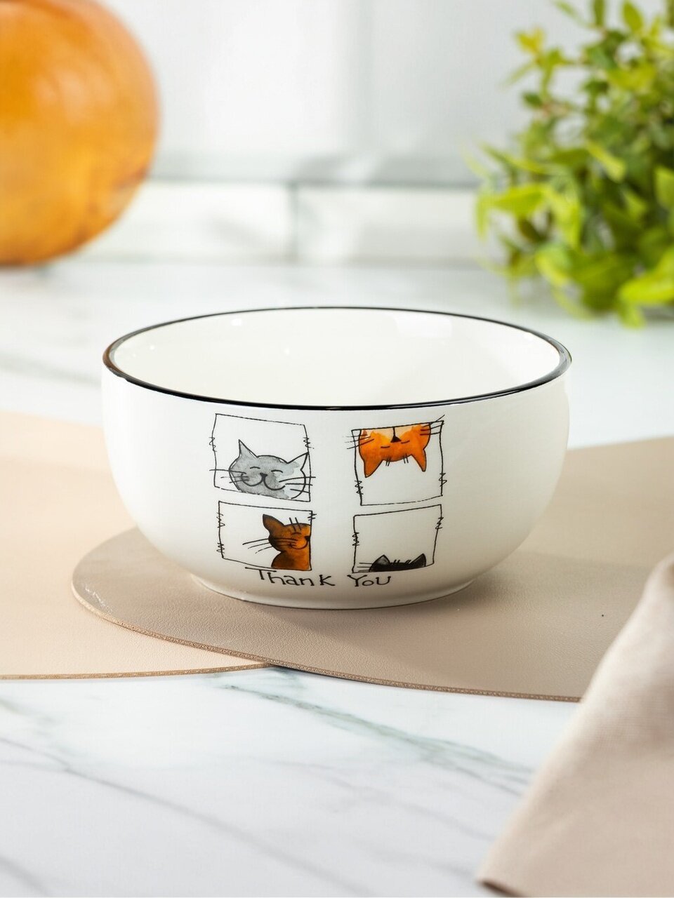 Салатник Daniks Cats из доломита 0,58 л — стильный подарок для любителей кошек, идеален для сервировки и хранения салатов, фруктов, снеков дома и на даче.