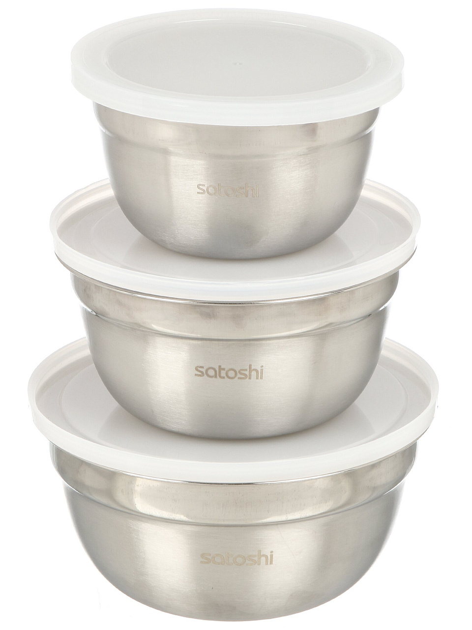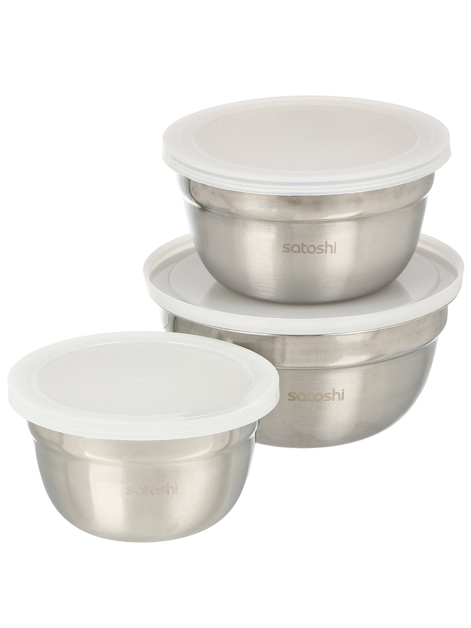 Салатники Satoshi из нержавеющей стали с крышками — универсальный набор 3 в 1 для кухни, дачи и хранения. Прочные, стильные, подходят для посудомоечной машины.