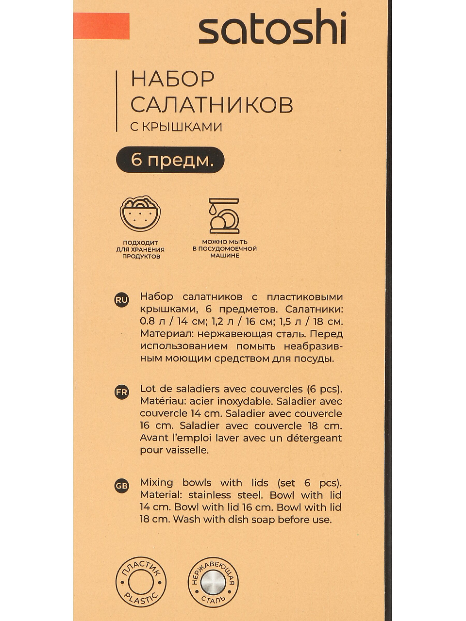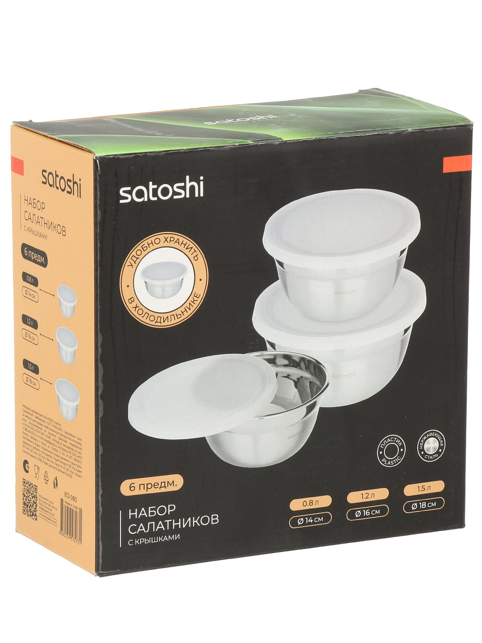 Салатники Satoshi — это надежный выбор для тех, кто ищет прочную и безопасную посуду для ежедневного использования. Благодаря материалу из нержавеющей стали они не впитывают запахи, легко очищаются и подходят для мытья в посудомоечной машине. Крышки плотно закрывают содержимое, что удобно для хранения салатов, закусок, фруктов или овощей как дома, так и на даче.