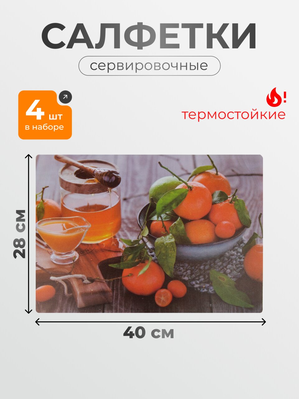 Вы можете приобрести «Набор салфеток пластик, 40х28 см, прямоугольный, 4 шт, для стола, Мандарины, Y4-9157» и другие товары в нашем интернет-магазине в Астрахани по низким ценам и с бесплатным самовывозом.