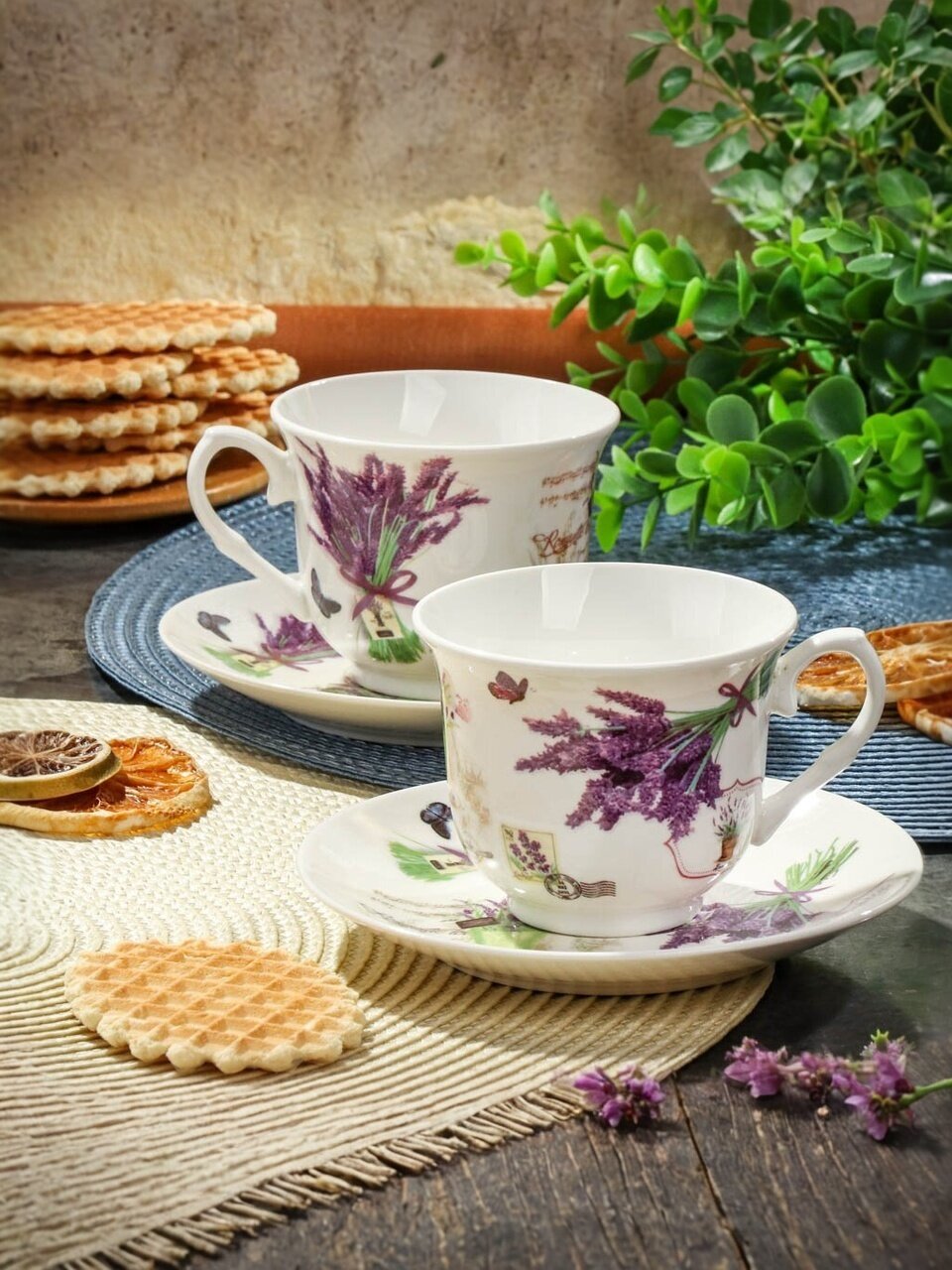 Чайный набор «Лавандовое поле» на 2 персоны: стильный подарок и уют для дома — керамика, 4 предмета, 220 мл, можно мыть в посудомойке