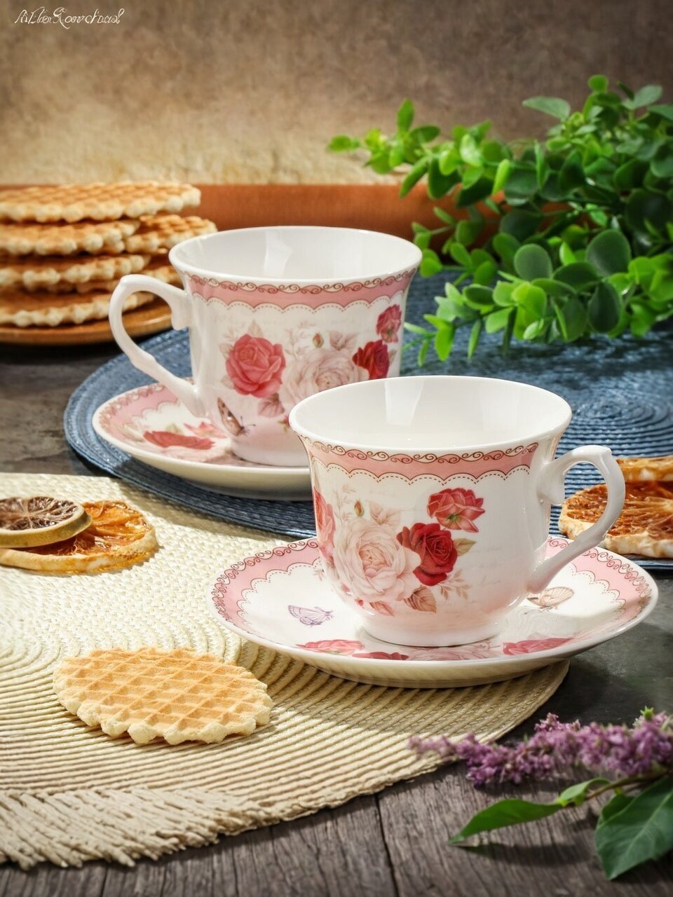 Чайный набор из керамики на 2 персоны — это гармония эстетики и функциональности. Керамические чашки объемом 220 мл удобно держать в руке, материал сохраняет тепло напитка и не впитывает запахи. Модель «Розовое поле» отличается ярким цветочным орнаментом, который украсит любой стол и создаст атмосферу уюта. Если вы ищете, какой чайный набор выбрать для подарка или для ежедневного использования, обратите внимание на прочность керамики, возможность мытья в посудомоечной машине и универсальность дизайна.