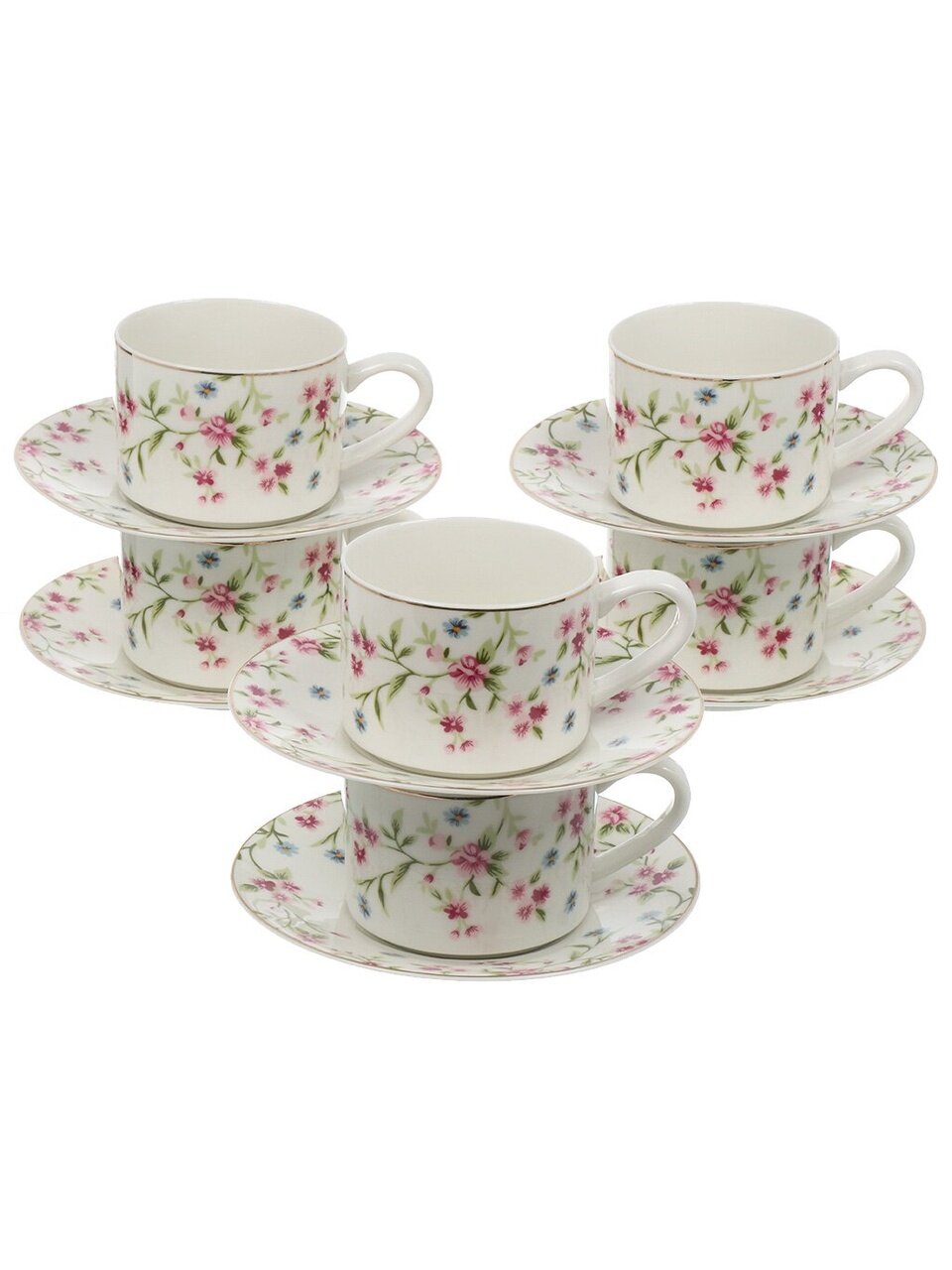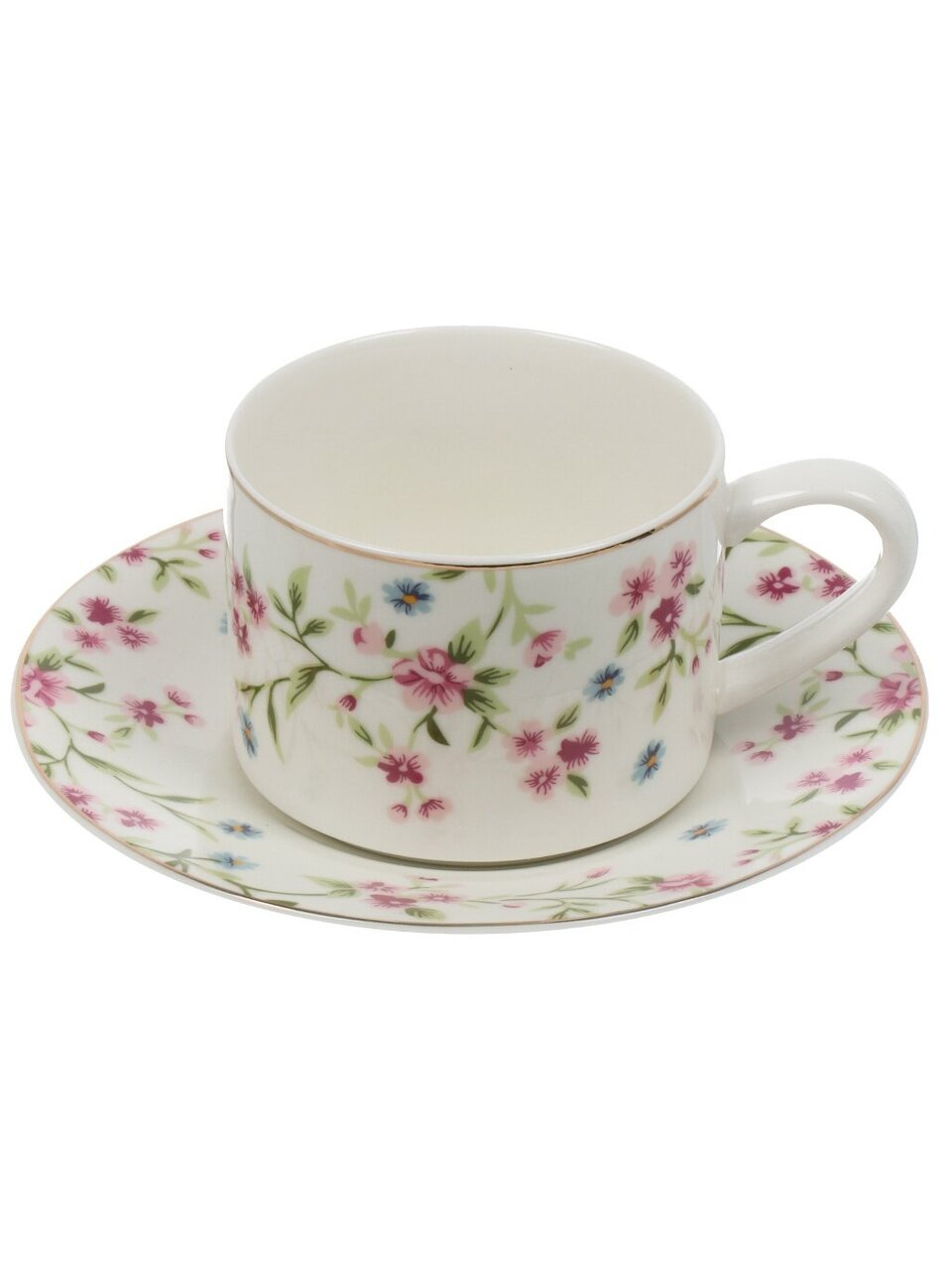 Объём чашки — 230 мл, всего в наборе 12 предметов: 6 чашек и 6 блюдец, рассчитан на 6 персон.