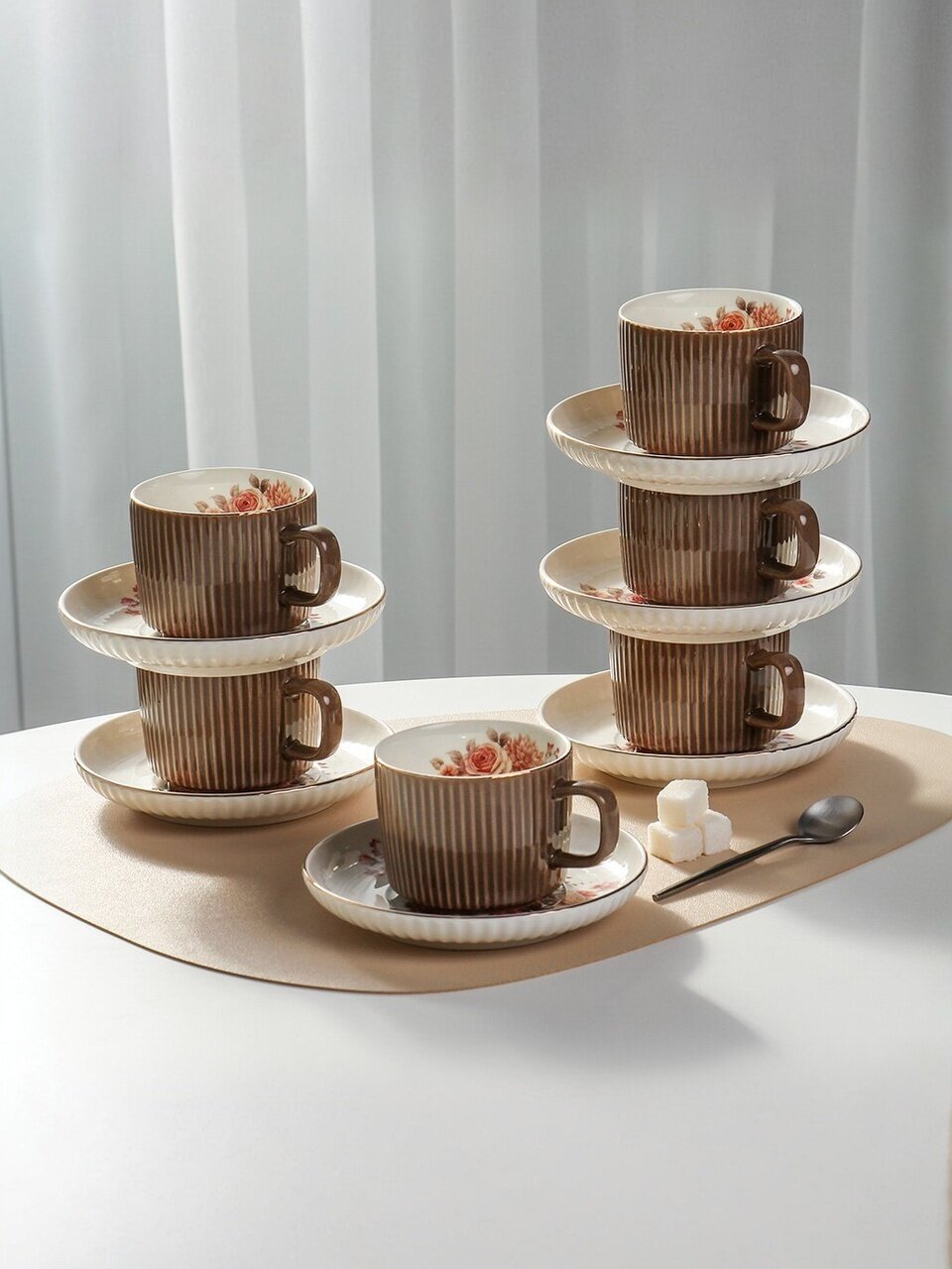 - Практичный комплект: 12 предметов для 6 персон, чашки объёмом 230 мл, прочная керамика — долговечность и комфорт в использовании.