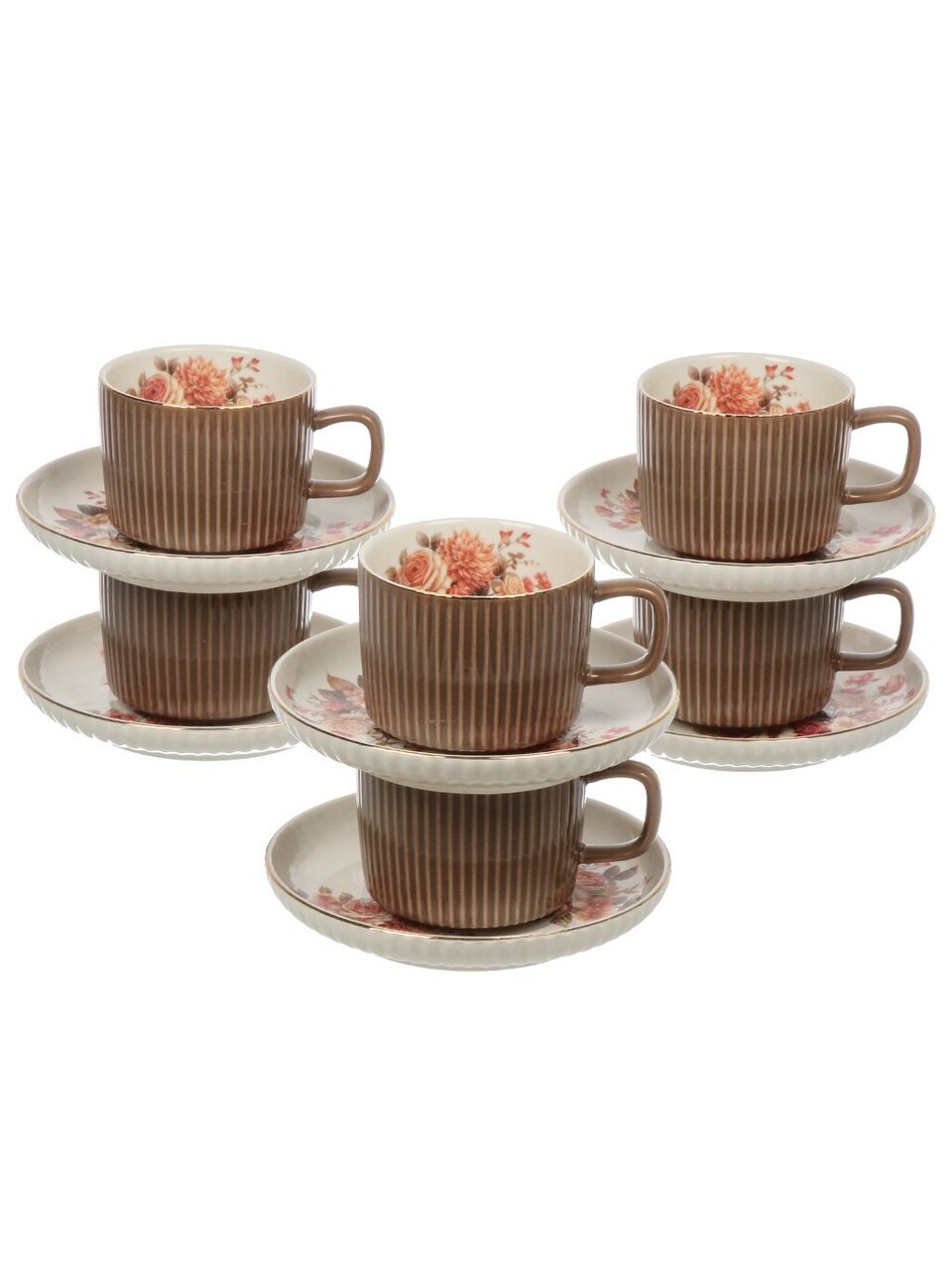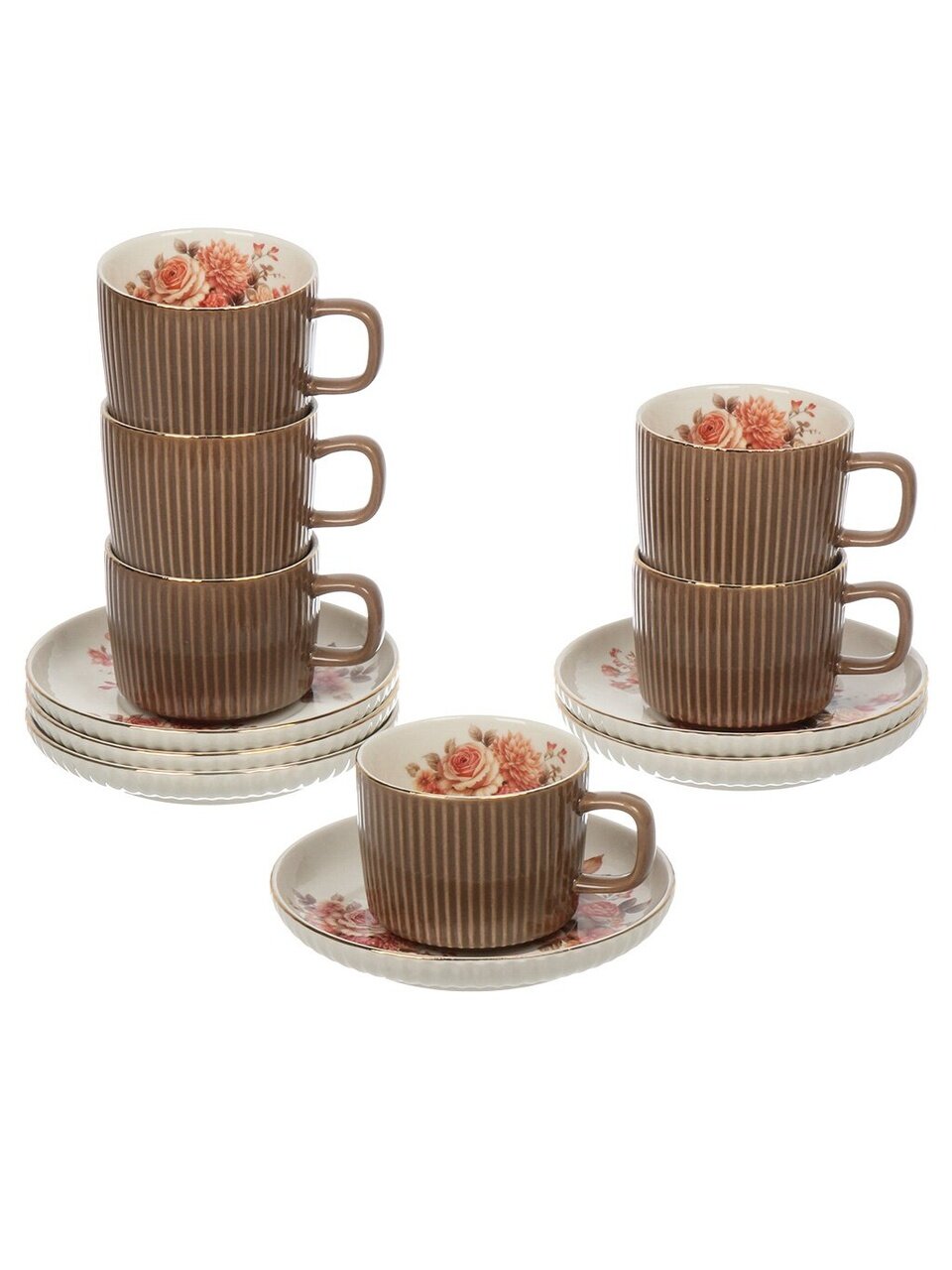 В комплекте 12 предметов: 6 чашек объёмом 230 мл (8.5х6.5 см) и 6 блюдец диаметром 15 см. Этого достаточно для уютного чаепития в компании семьи или гостей.