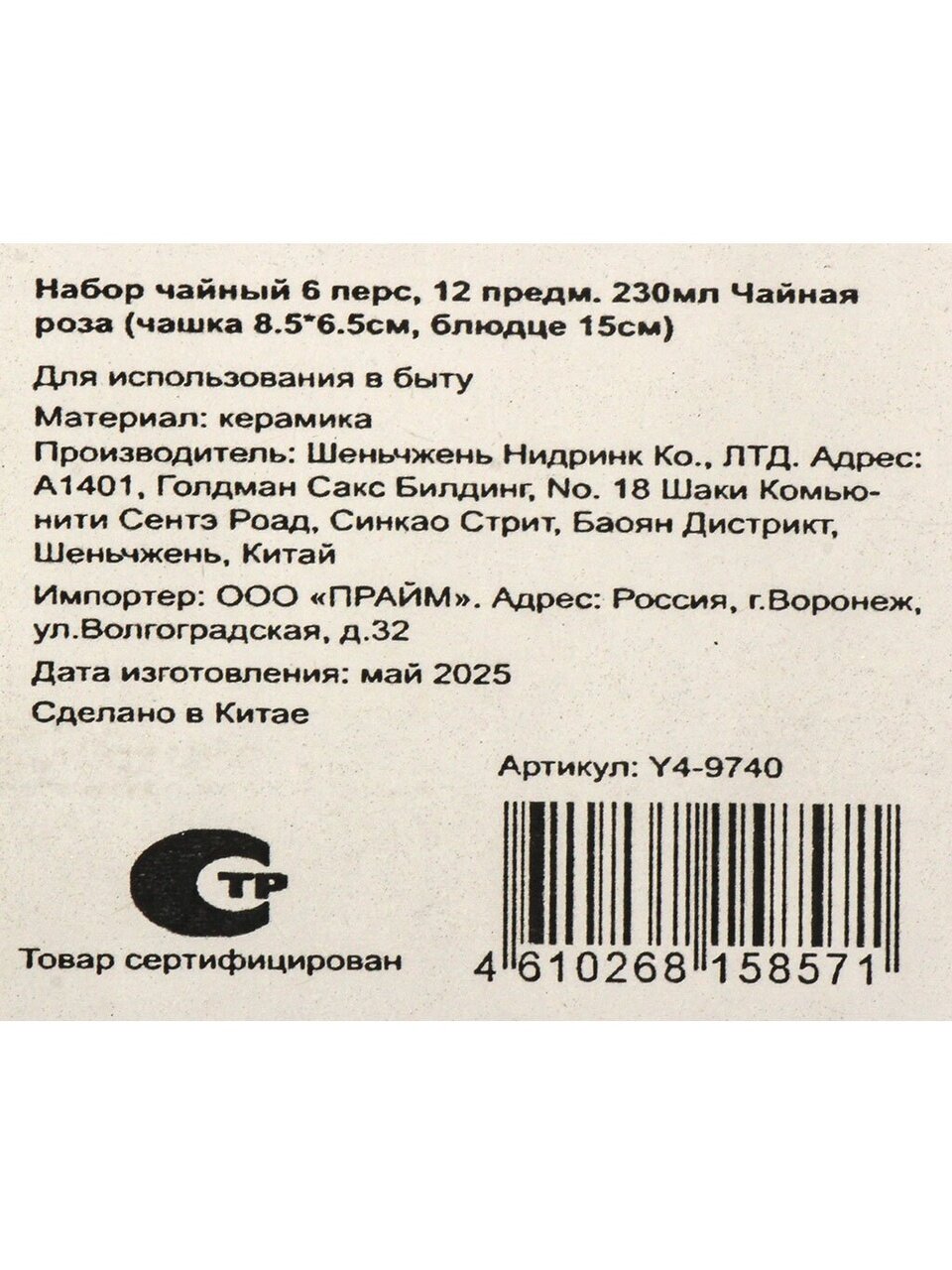 Вы можете приобрести «Набор чайный керамика, 12 предметов, на 6 персон, 230 мл, Чайная роза, Y4-9740, подарочная упаковка» и другие товары в нашем интернет-магазине в Твери по низким ценам и с бесплатным самовывозом.