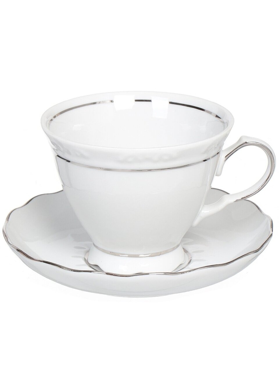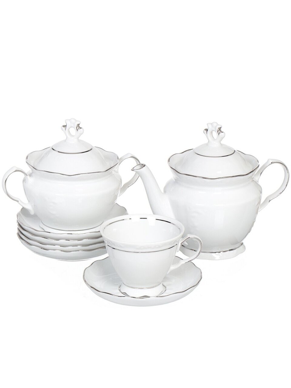Чайный сервиз из фарфора на 6 персон с платиновым декором: идеальный подарок и украшение для семейных чаепитий, стильная классика от Добрушского завода
