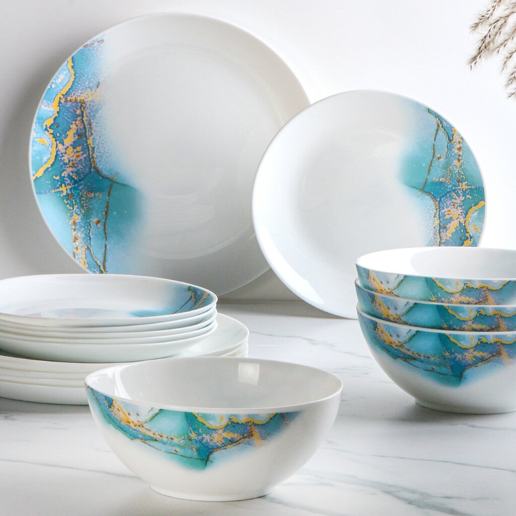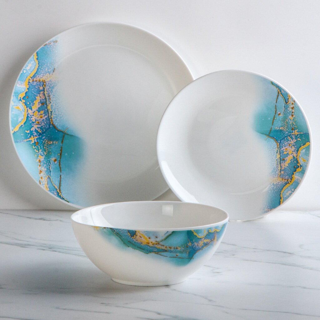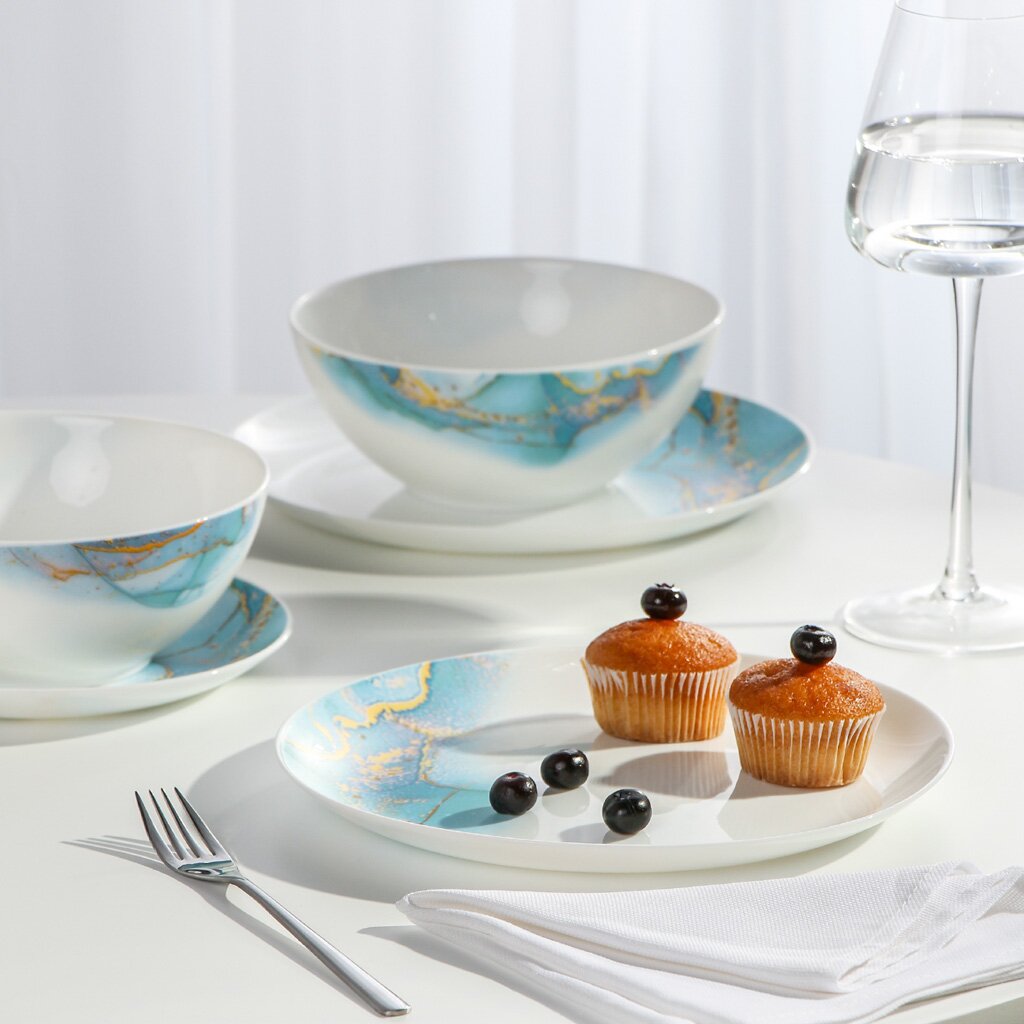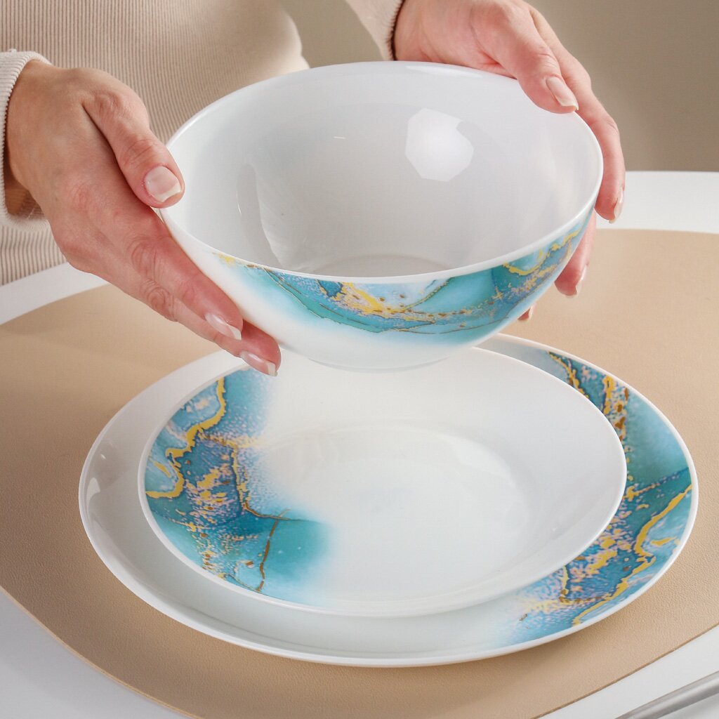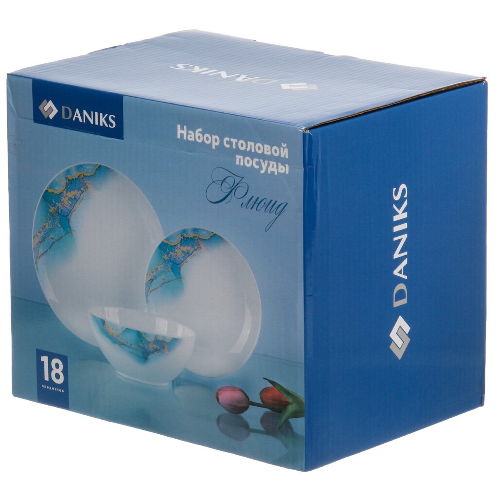 Столовый сервиз из стеклокерамики Daniks Флюид (18 предметов, 6 персон, синий) — стильное решение для сервировки, подходит для дома, дачи и ежедневного использования.