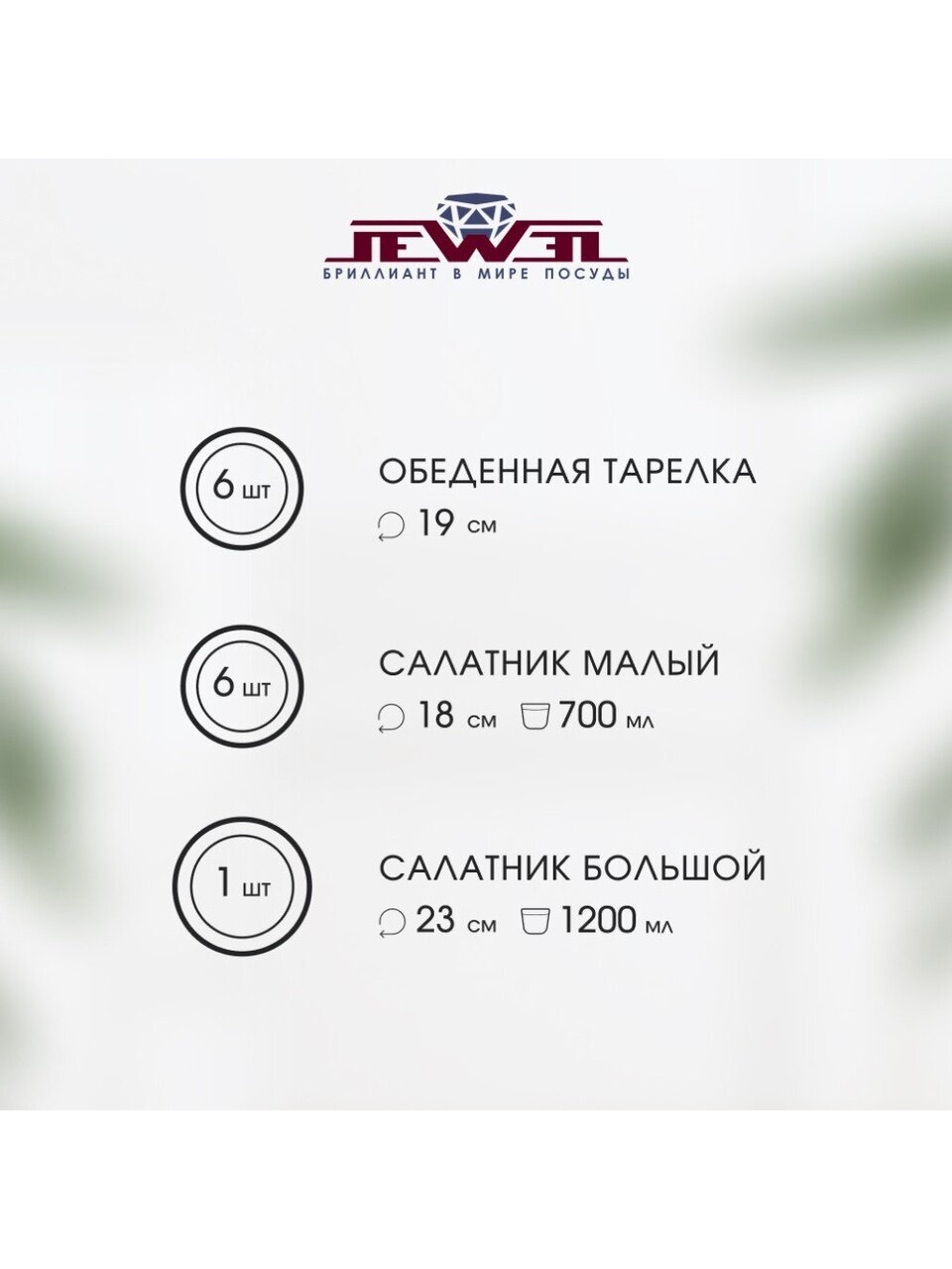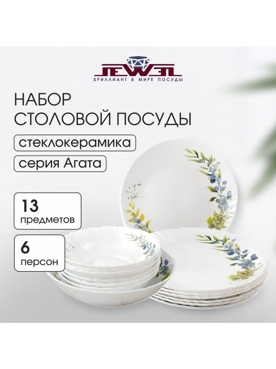 Стильный столовый сервиз из стеклокерамики Jewel Агата на 6 персон: 13 предметов для сервировки дома, дачи и подарка. Безопасен для СВЧ и посудомоечной машины.