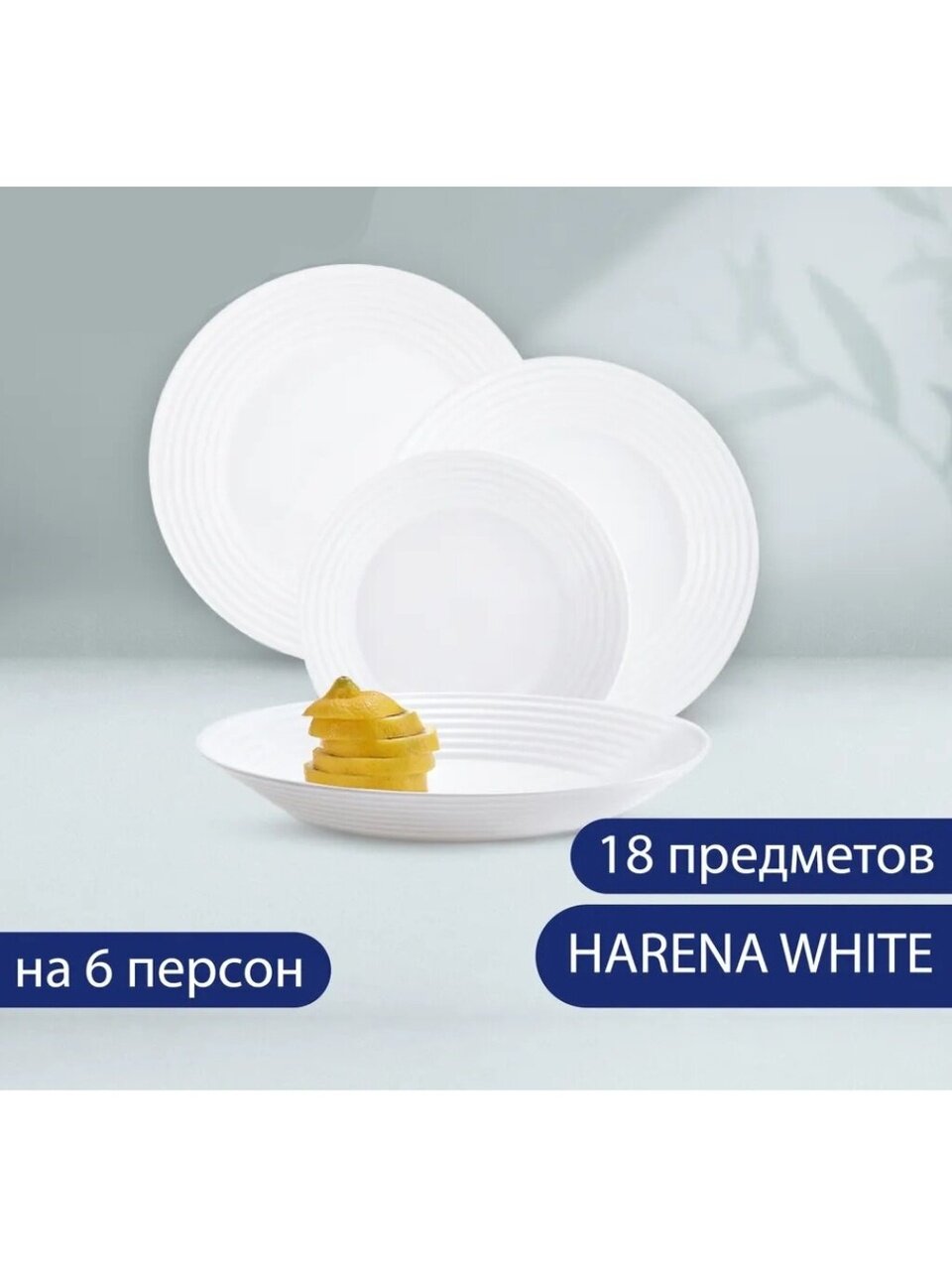 Сервиз Luminarc Harena на 6 персон — 18 предметов из прочного стекла: идеально для стильной сервировки, удобен для дома, дачи и подарка.