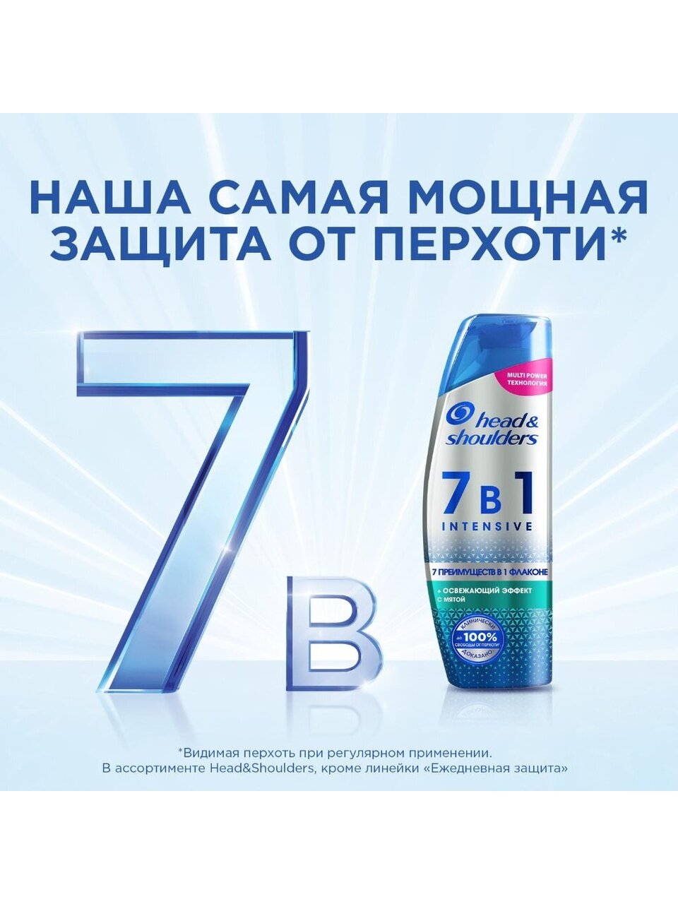 Шампунь 7-в-1 Intensive с охлаждающим эффектом - самый передовой шампунь от Head & Shoulders против перхоти в истории. Он эффективно борется сразу с множественными признаками перхоти и обладает 7 преимуществами для волос и кожи головы: