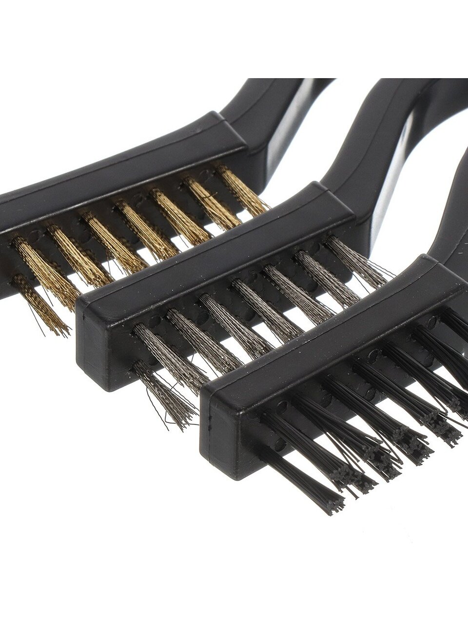 Набор щеток по металлу с пластиковыми ручками — полезный аксессуар для домашней мастерской. С их помощью легко очищаются металлические поверхности от ржавчины и запекшейся грязи. Каждая щетка оборудована стальными щетинками для грубой обработки металла. Небольшие размеры изделий позволяют быстро добраться до наиболее труднодоступных мест. Пластиковые ручки удобно удерживаются в руке благодаря эргономичной форме.