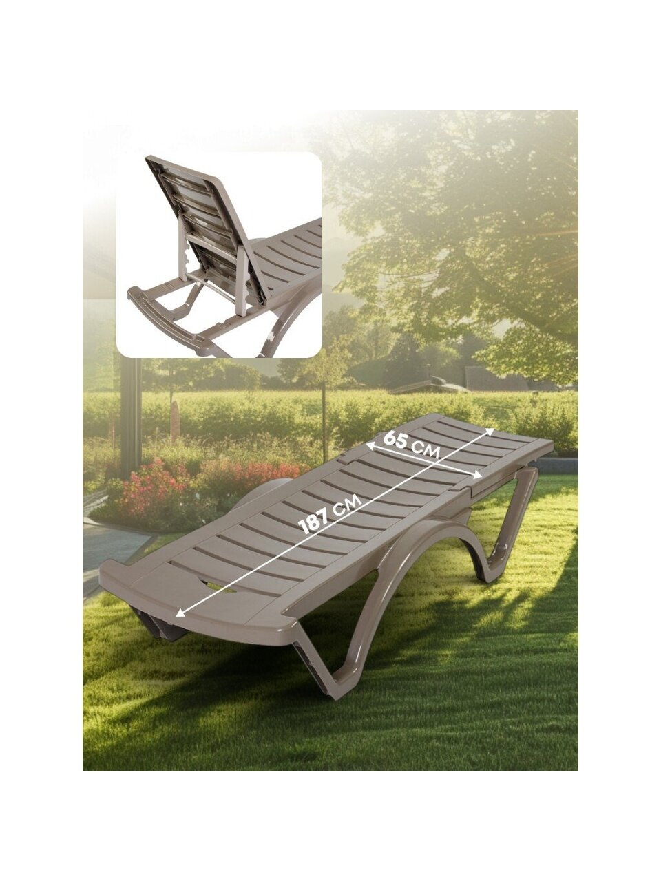 - всепогодность: материал устойчив к воздействию погодных условий, что делает шезлонг идеальным для использования на улице в любое время года;