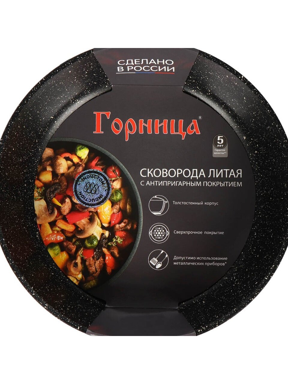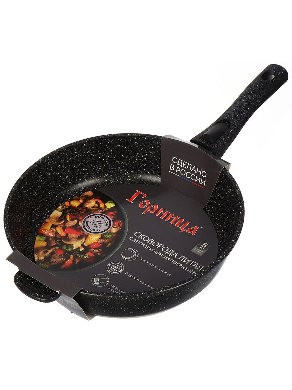Сковорода литой алюминий 28 см Горница Гранит Induction — антипригарное покрытие, съемная ручка, подходит для индукции. Без труда готовьте дома и на даче до 5 лет без замены.