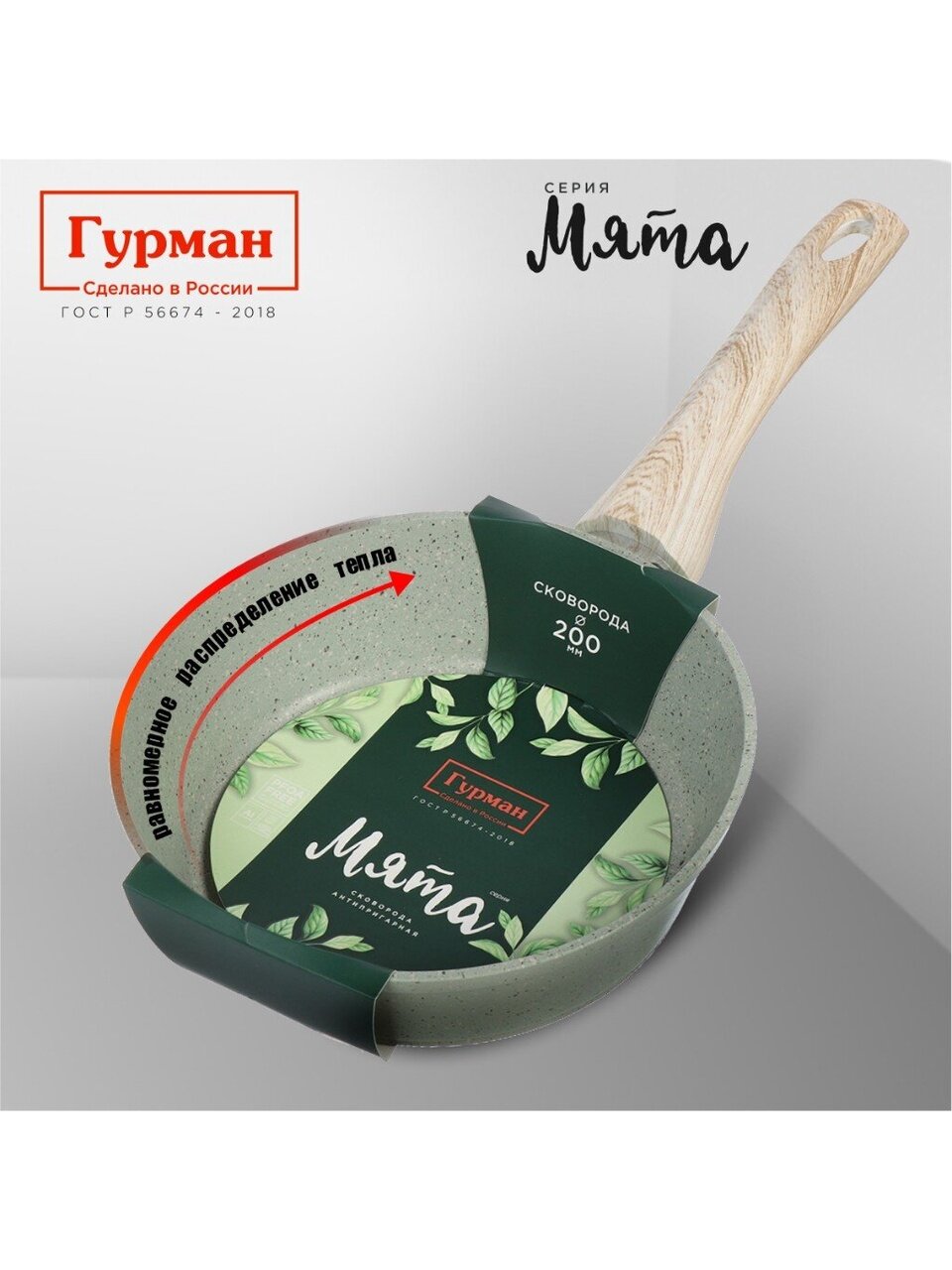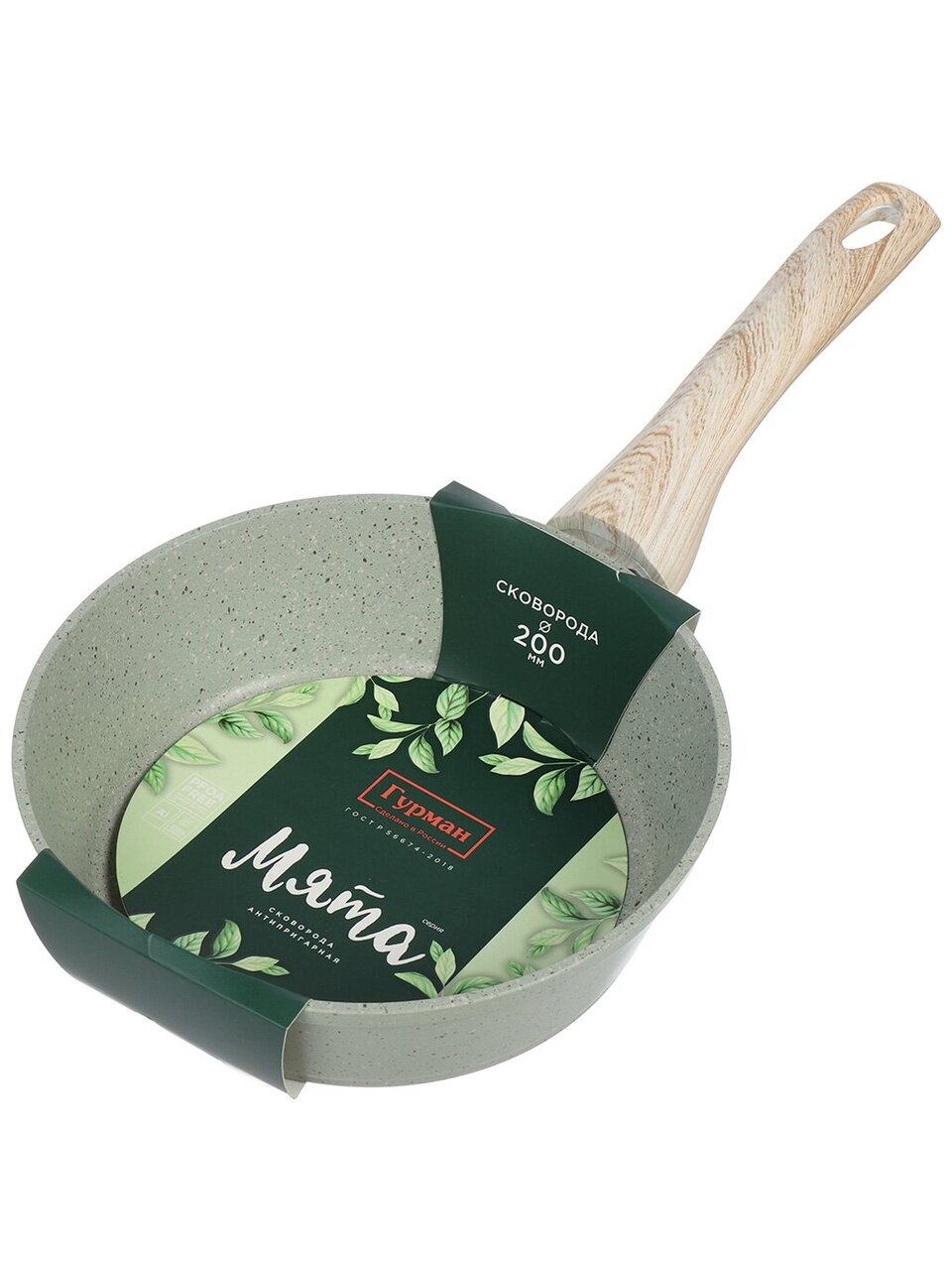 Сковорода литой алюминий 20 см Гурман Мята: идеальный выбор для индукции и любых плит, антипригарное гранитное покрытие, 3 года гарантии.