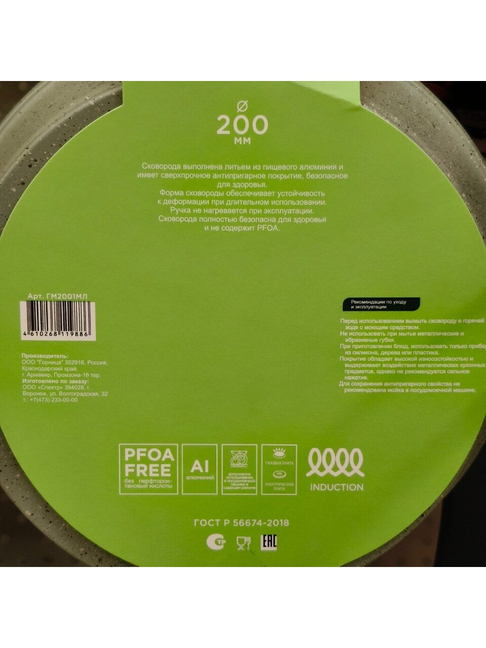 - Оптимальный размер 20 см, литой алюминий, дно 3 мм — равномерное прогревание, служит до 36 месяцев