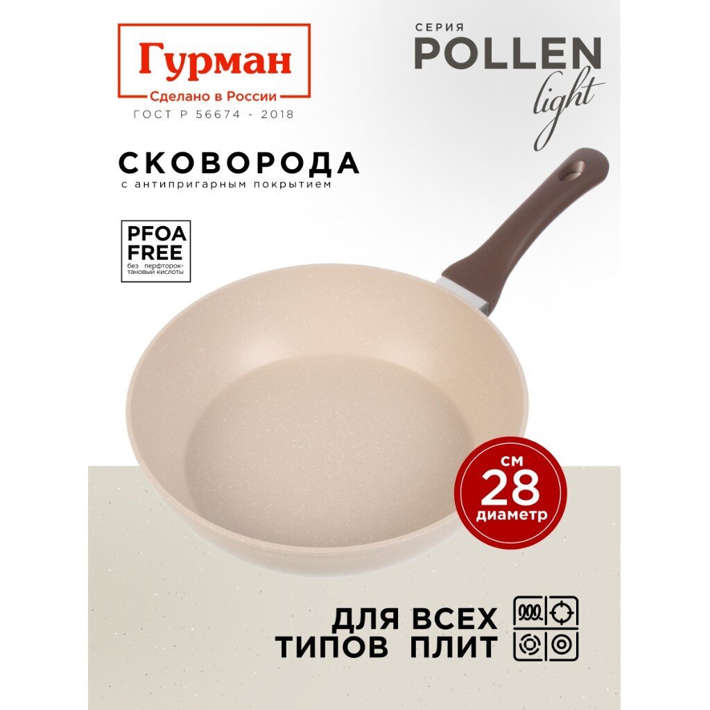 Вы можете приобрести «Сковорода литой алюминий, 28 см, антипригарное покрытие, Гурман, Pollen light, индукция, ГМ2801ПЛИ» и другие товары в нашем интернет-магазине в Астрахани по низким ценам и с бесплатным самовывозом.