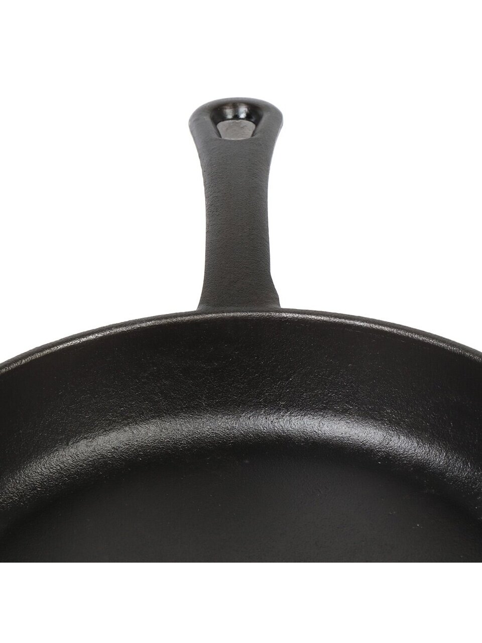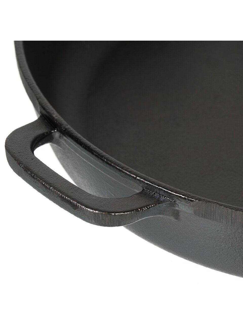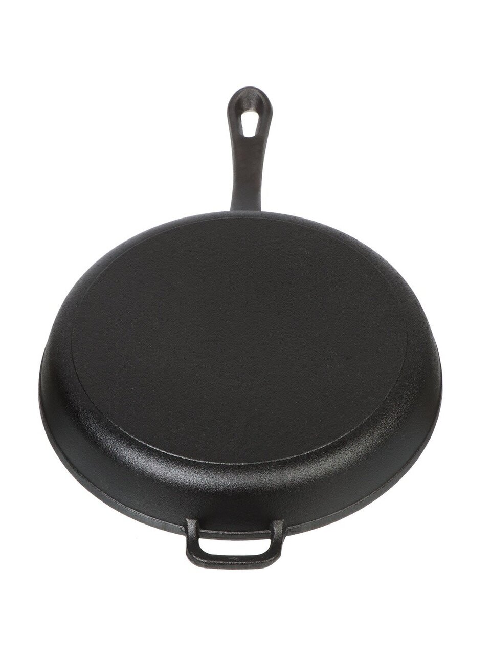 - Диаметр 26 см и прочный чугун толщиной 3,8 мм — оптимально для равномерного прогрева и жарки без деформаций.