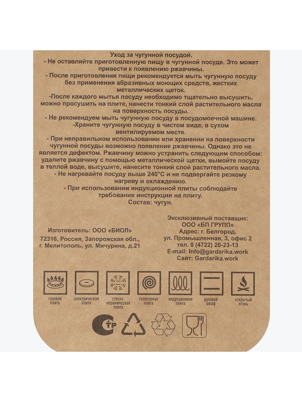 Закажите чугунную сковороду Гардарика 26 см по выгодной цене — получите универсальный инструмент для кухни, который прослужит не один десяток лет. Быстрая доставка, гарантия 12 месяцев, российское производство.