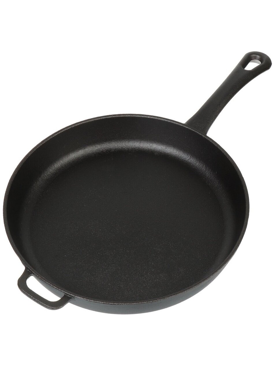Чугун надежен, не выделяет вредных веществ, а естественный антипригарный слой формируется со временем. Такая сковорода отлично подходит для приготовления мяса, рыбы, оладий и блюд с хрустящей корочкой.