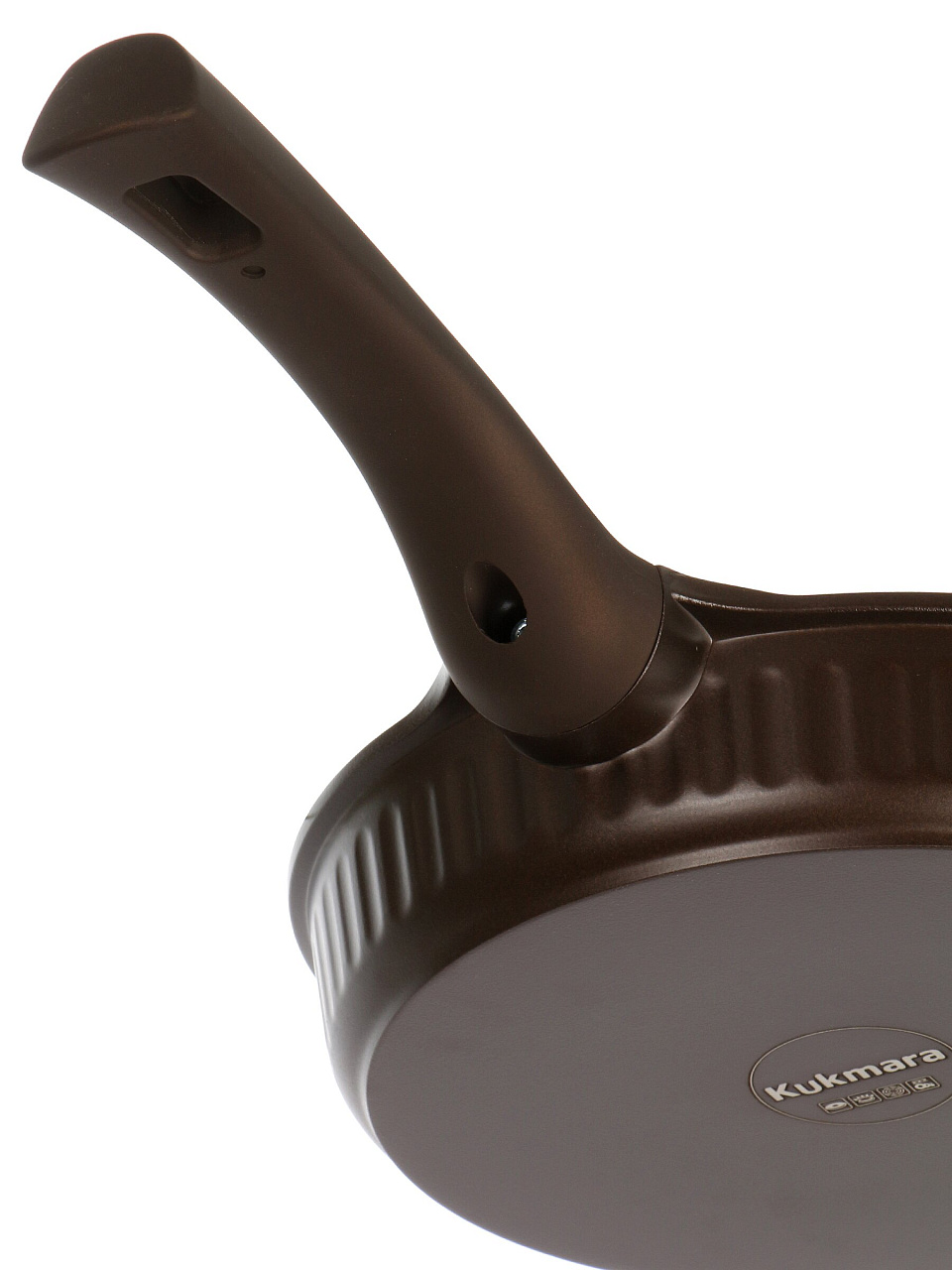Часто спрашивают: какой сковородой лучше жарить мясо или рыбу, как выбрать универсальную сковороду для дома? Модель Kukmara Stella — это глубокая сковорода с толстым дном, которая обеспечивает равномерный прогрев и предотвращает деформацию. В отличие от штампованных аналогов, литой алюминий не боится частого использования и перепадов температуры. Сковорода подходит для газовых, электрических и стеклокерамических плит, но не предназначена для индукции.