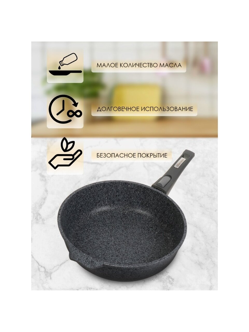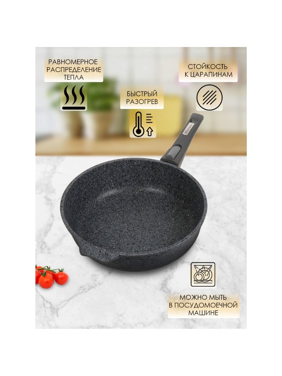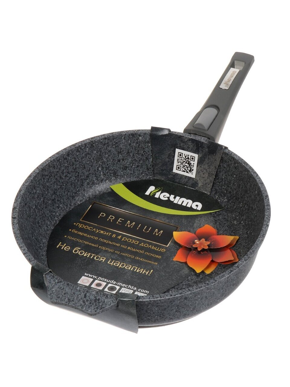 Сковорода литая алюминиевая 28 см Мечта Premium grey — антипригарное покрытие “под камень”, съемная ручка, для дома и дачи по выгодной цене.