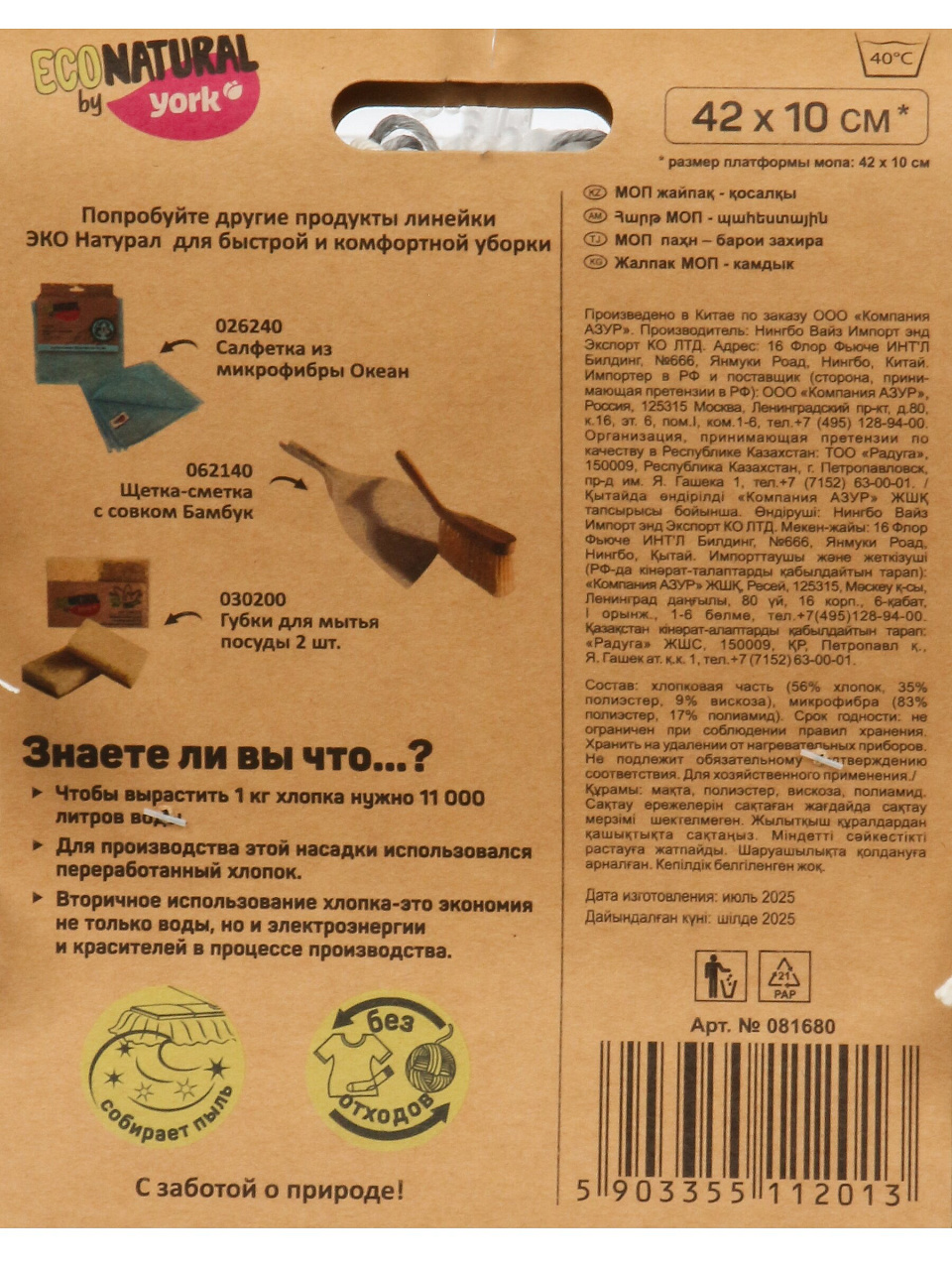 Сменный блок для швабры York Эко Натурал 44х13 см — хлопковая насадка для быстрой и эффективной уборки дома, дачи и офиса. Экологичный выбор для заботы о чистоте и здоровье семьи. Длина ворса: 3 см.
