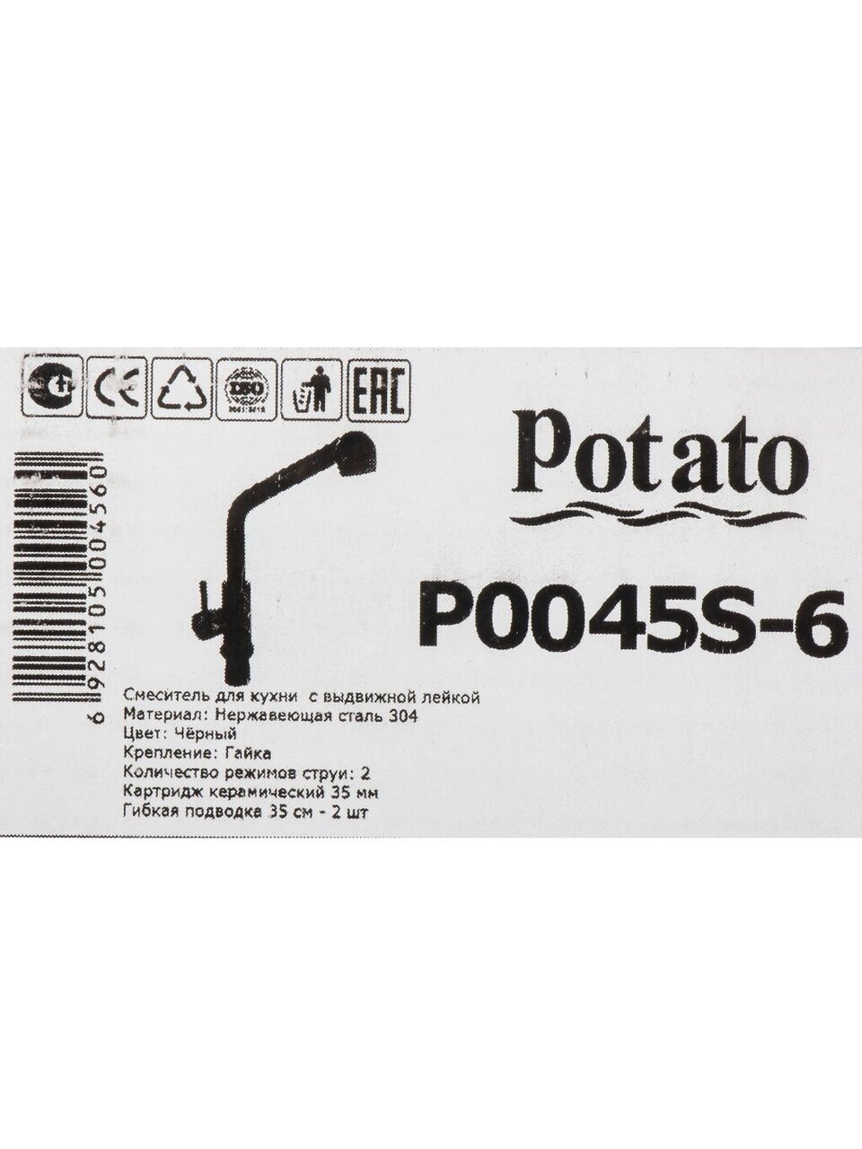Смеситель для кухни Potato P0045S-6: выдвижной излив, нержавеющая сталь, 2 режима струи — чистота и удобство для вашей кухни без лишних затрат.