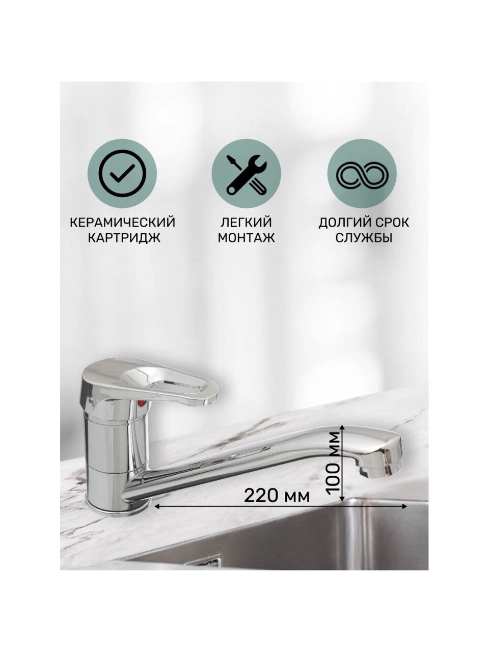 Часто спрашивают: чем отличается этот смеситель от других моделей? В отличие от пластиковых аналогов, латунный корпус дольше сохраняет герметичность, а керамический картридж обеспечивает плавное и бесшумное управление водой. Средний размер излива (22 см) универсален: удобно мыть посуду, набирать воду в кастрюли, а поворотный механизм расширяет рабочую зону. Неважно, ищете ли вы недорогой смеситель для дачи или хотите обновить кухню в квартире — эта модель подойдёт для любых сценариев.