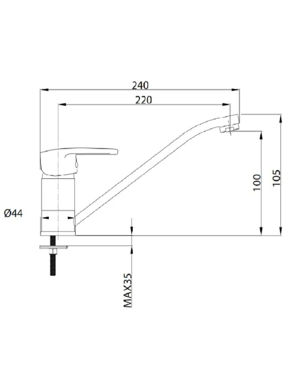 Длина излива — 22 см, высота — 10 см. Это оптимально для большинства кухонных задач: удобно мыть посуду, наполнять кастрюли и использовать большие ёмкости.