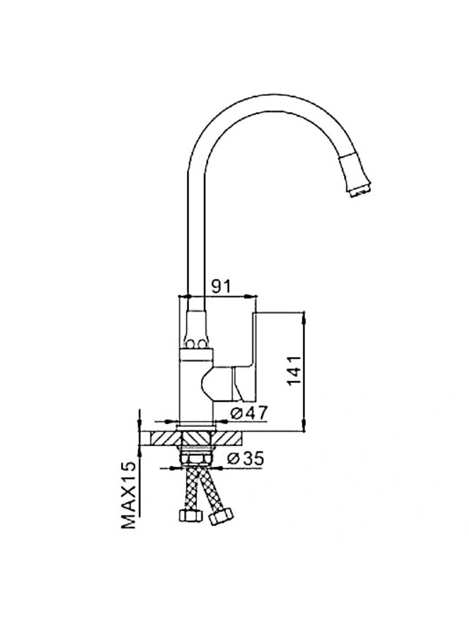 Для установки требуется одно отверстие диаметром 47 мм, крепление осуществляется на шпильку с гибкой подводкой 1/2".