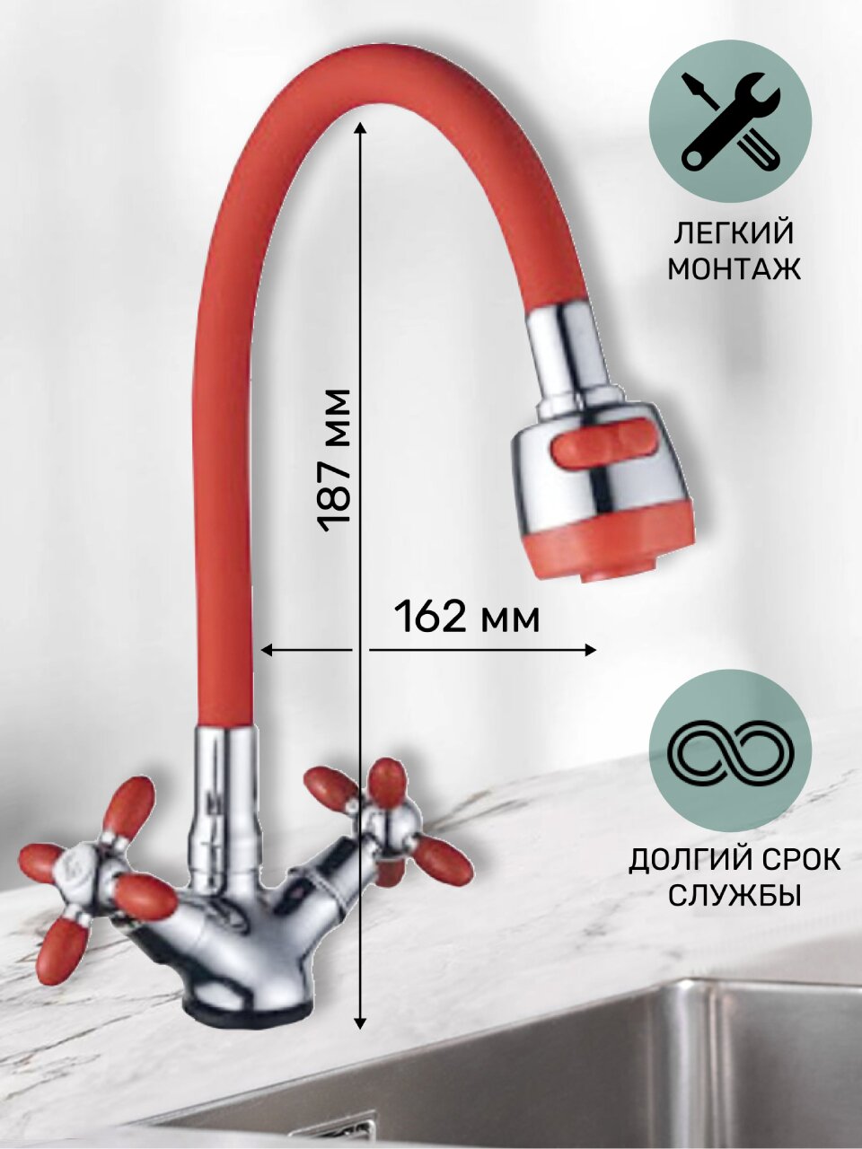 Выбирая смеситель для кухни с гибким изливом, вы получаете не только функциональность, но и яркий акцент в интерьере. Закажите сейчас — и оцените удобство, простоту установки и высокое качество товара по выгодной цене.