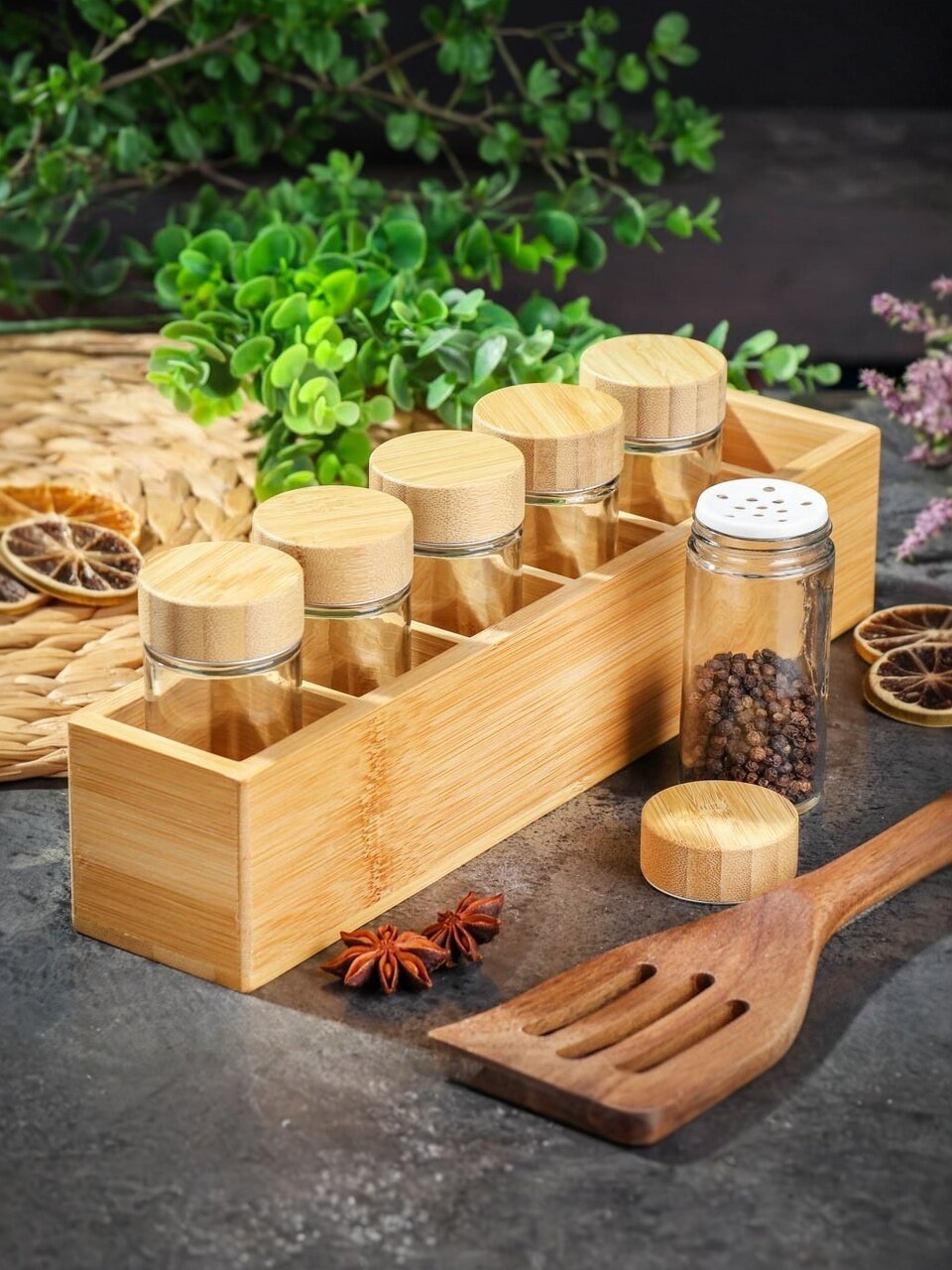 Вы можете приобрести «Набор для специй стекло, бамбук, 100 мл, 6 шт, на подставке, SH02532B» и другие товары в нашем интернет-магазине в Серпухове по низким ценам и с бесплатным самовывозом.