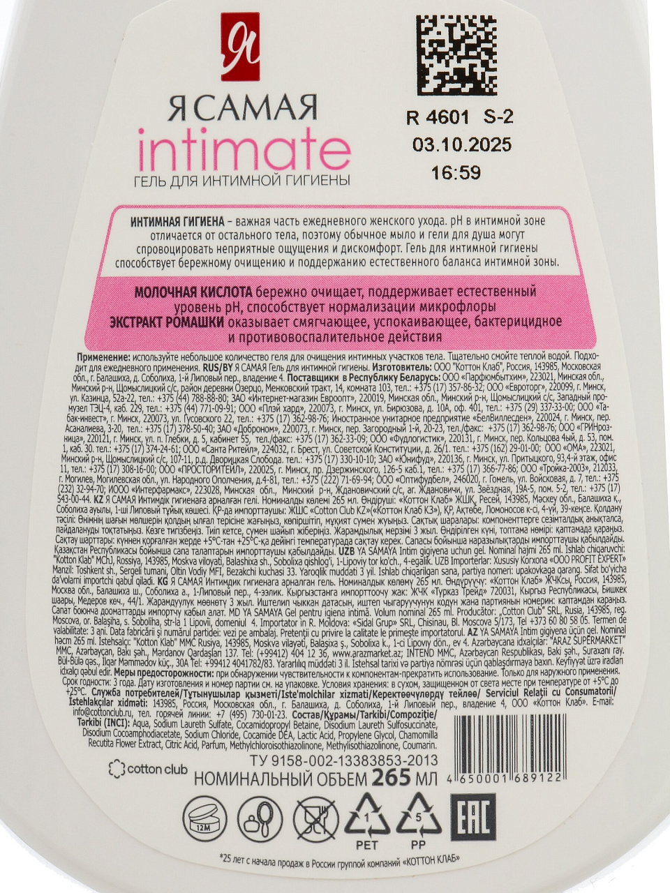 Гель для интимной гигиены 265 мл «Я самая» — деликатная защита и комфорт для чувствительной кожи каждый день. Без раздражения, с заботой о вашем здоровье.