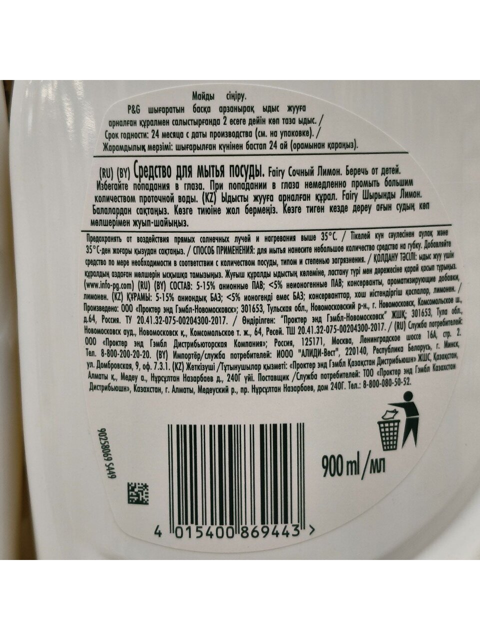 Fairy - безопасный продукт, разработанный в европейском научно-исследовательском центре (Brussels Innovation Centre) и полностью соответствующий ГОСТу РФ.