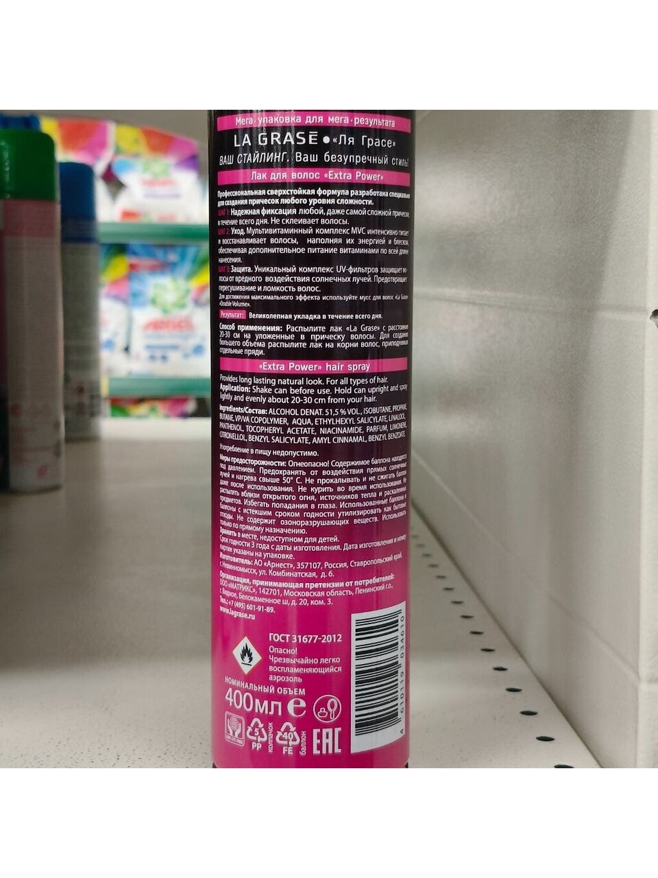 Вы можете приобрести «Лак для волос La Grase, Extra Power, 400 мл» и другие товары в нашем интернет-магазине в Твери по низким ценам и с бесплатным самовывозом.
