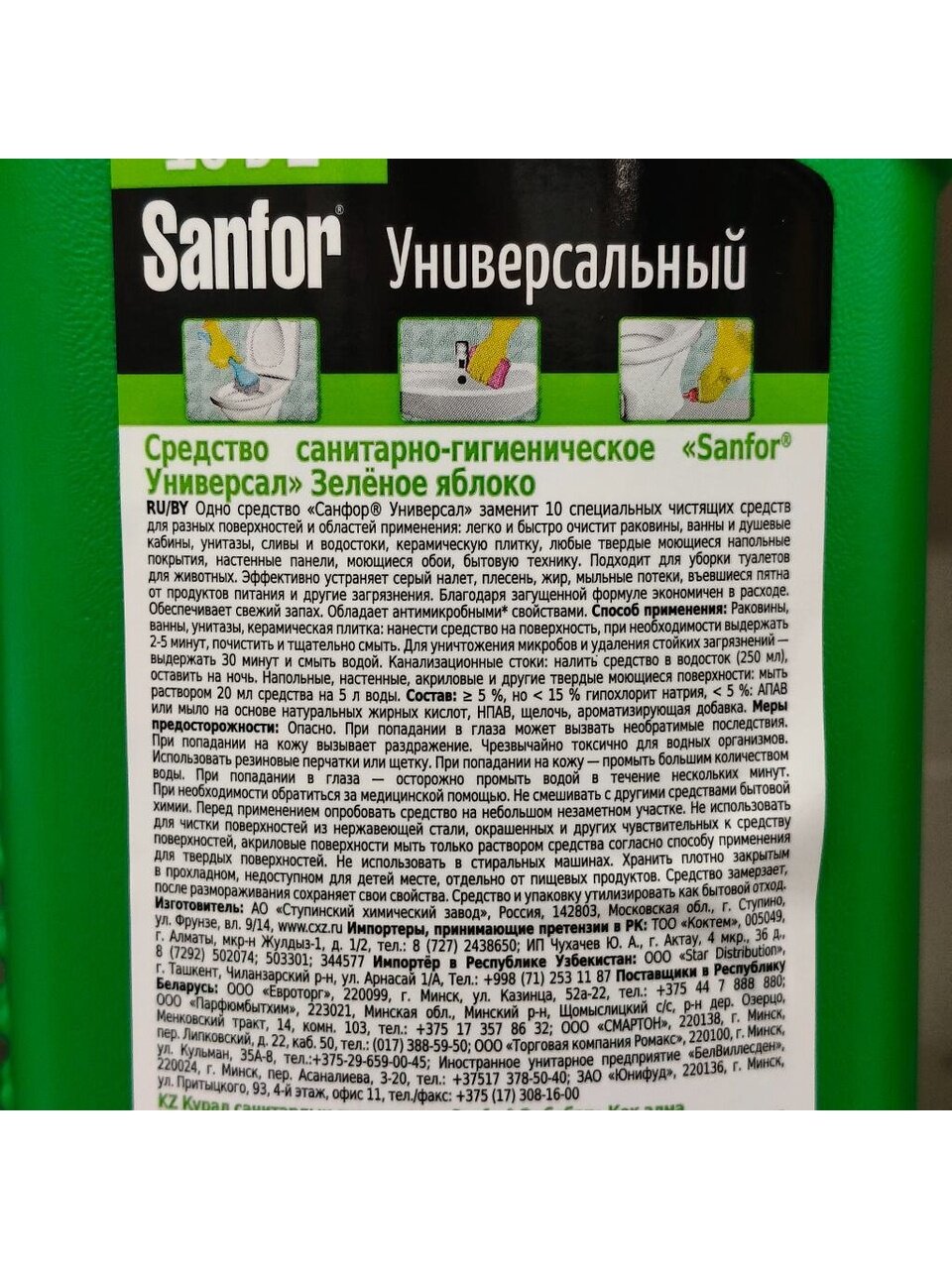 Вы можете приобрести «Чистящее средство санитарно-гигиеническое, Sanfor, Зеленое яблоко, гель, 1.5 л, универсальный» и другие товары в нашем интернет-магазине в Курске по низким ценам и с бесплатным самовывозом.