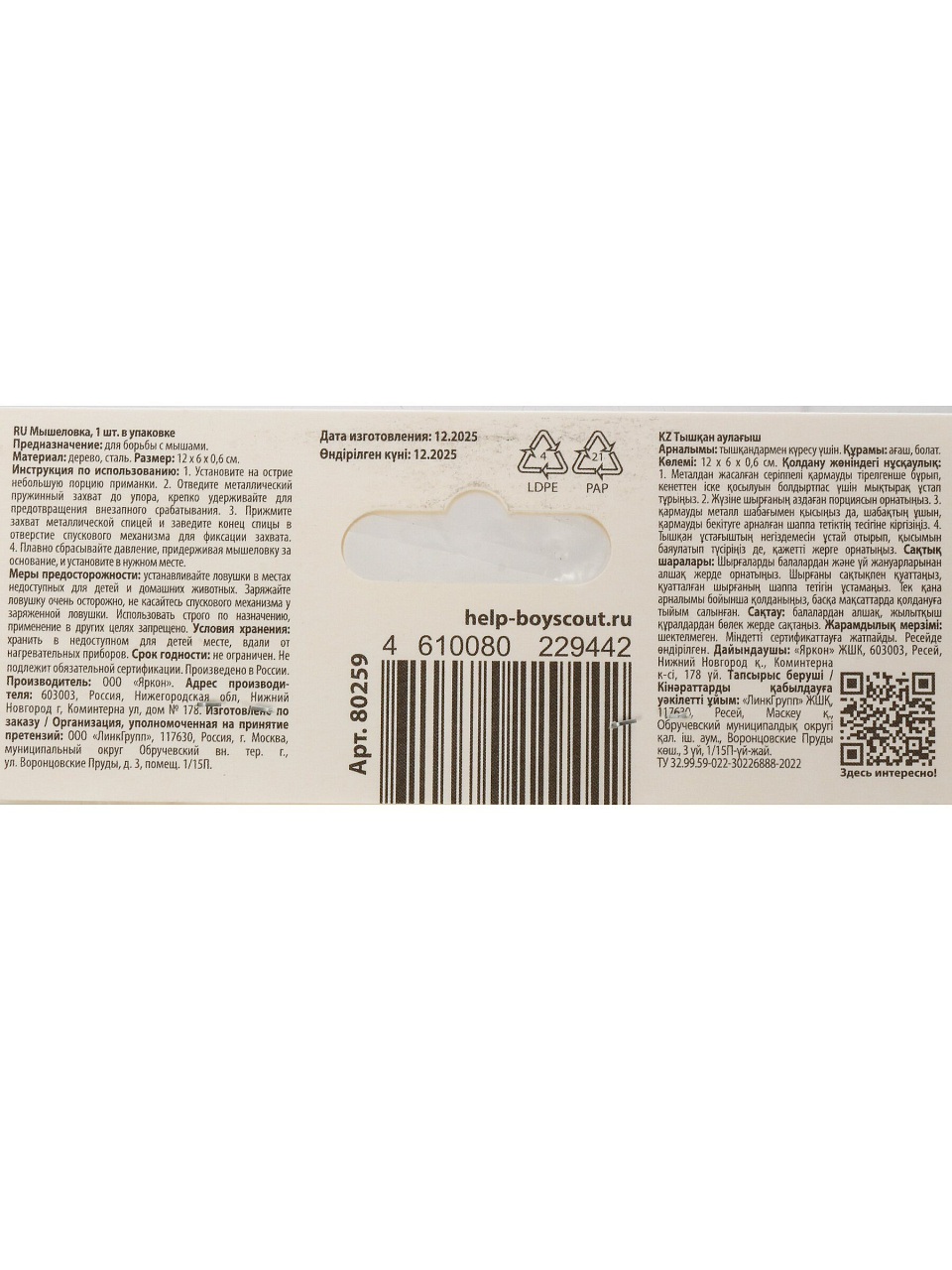 Часто спрашивают, подходит ли мышеловка Help для больших мышей или, как использовать ловушку правильно. Ответ: конструкция рассчитана на стандартных домашних и полевых грызунов, установка занимает 1 минуту — просто разместите приманку и поставьте мышеловку вдоль стены, где были замечены следы. В отличие от электронных и клеевых аналогов, этот вариант не требует батареек и работает в любых условиях.