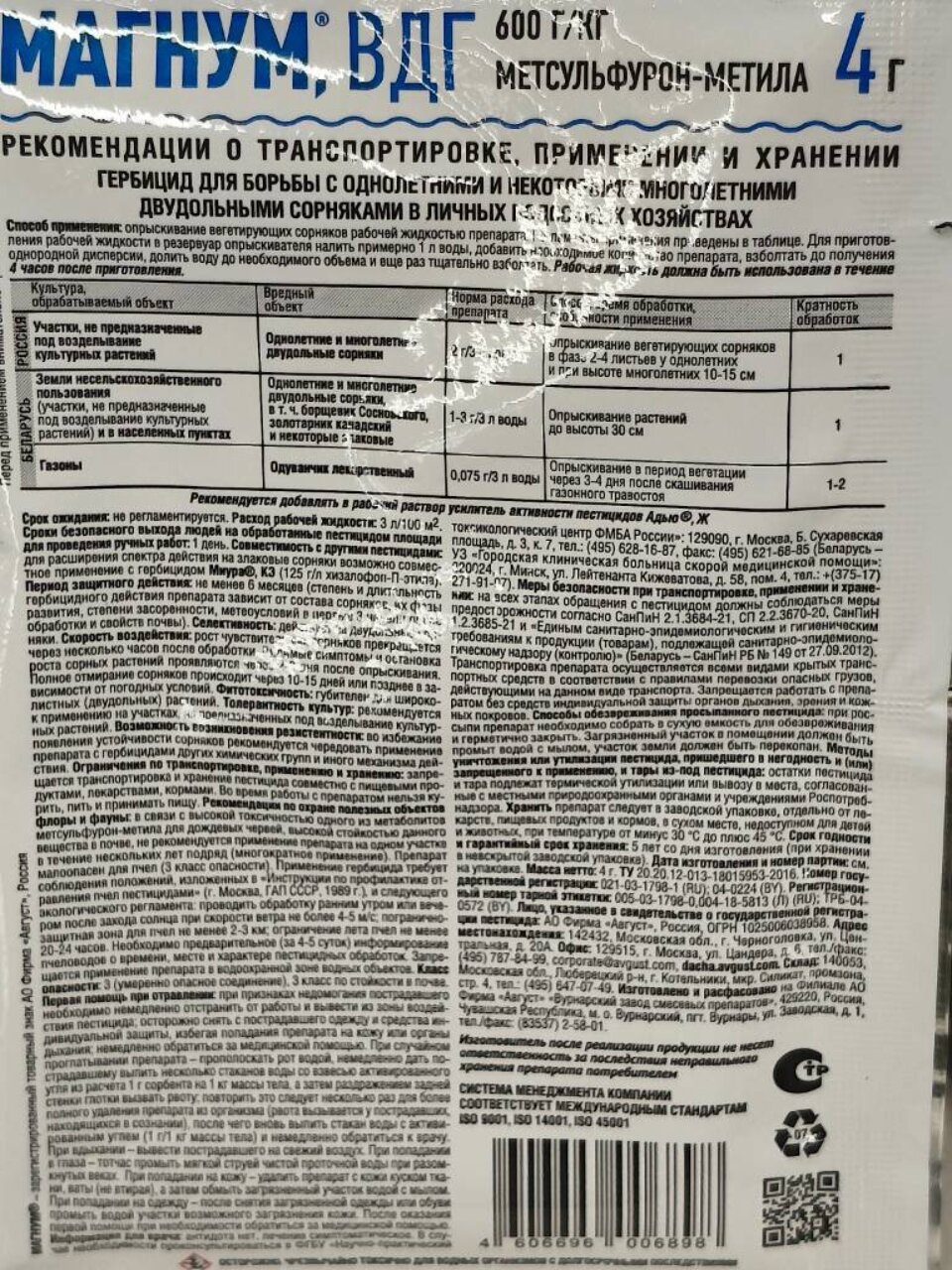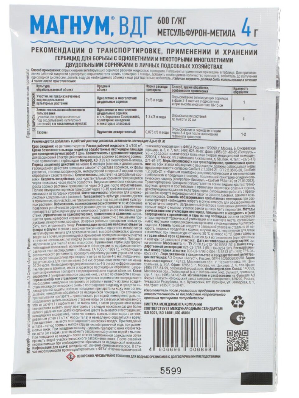 Покупка гербицида Магнум — это инвестиция в здоровый и ухоженный сад, свободный от сорняков. Вес пакета всего 4 г, что делает его удобным для хранения и использования.