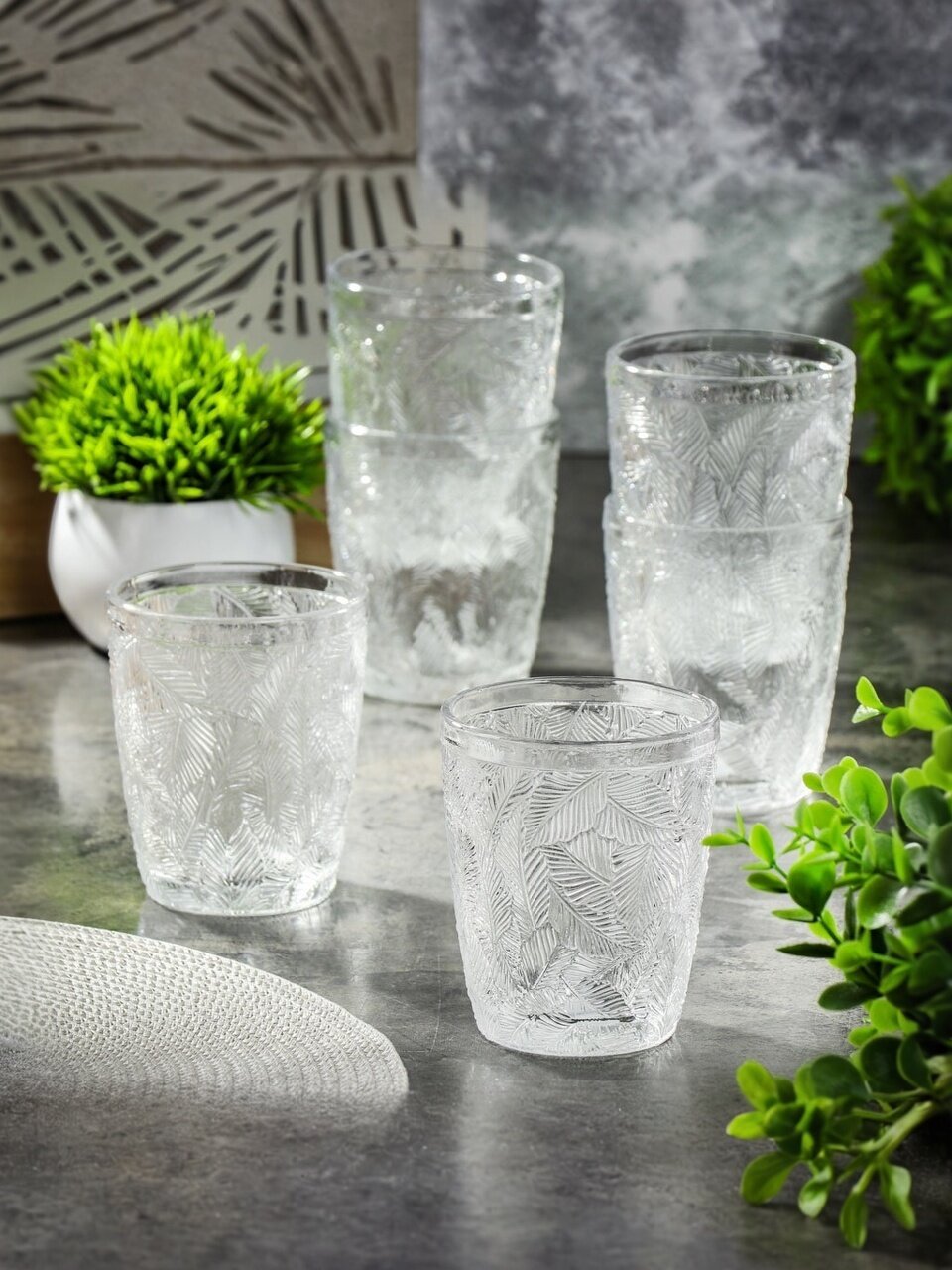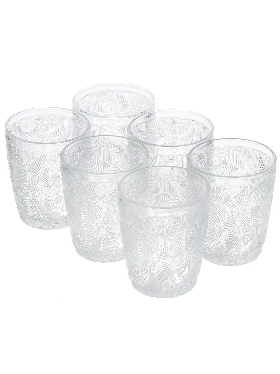 Стаканы 300 мл из стекла (6 шт) «Листья» — универсальный набор для воды и напитков, который украсит ваш стол и решит вопрос сервировки для дома, дачи или подарка.