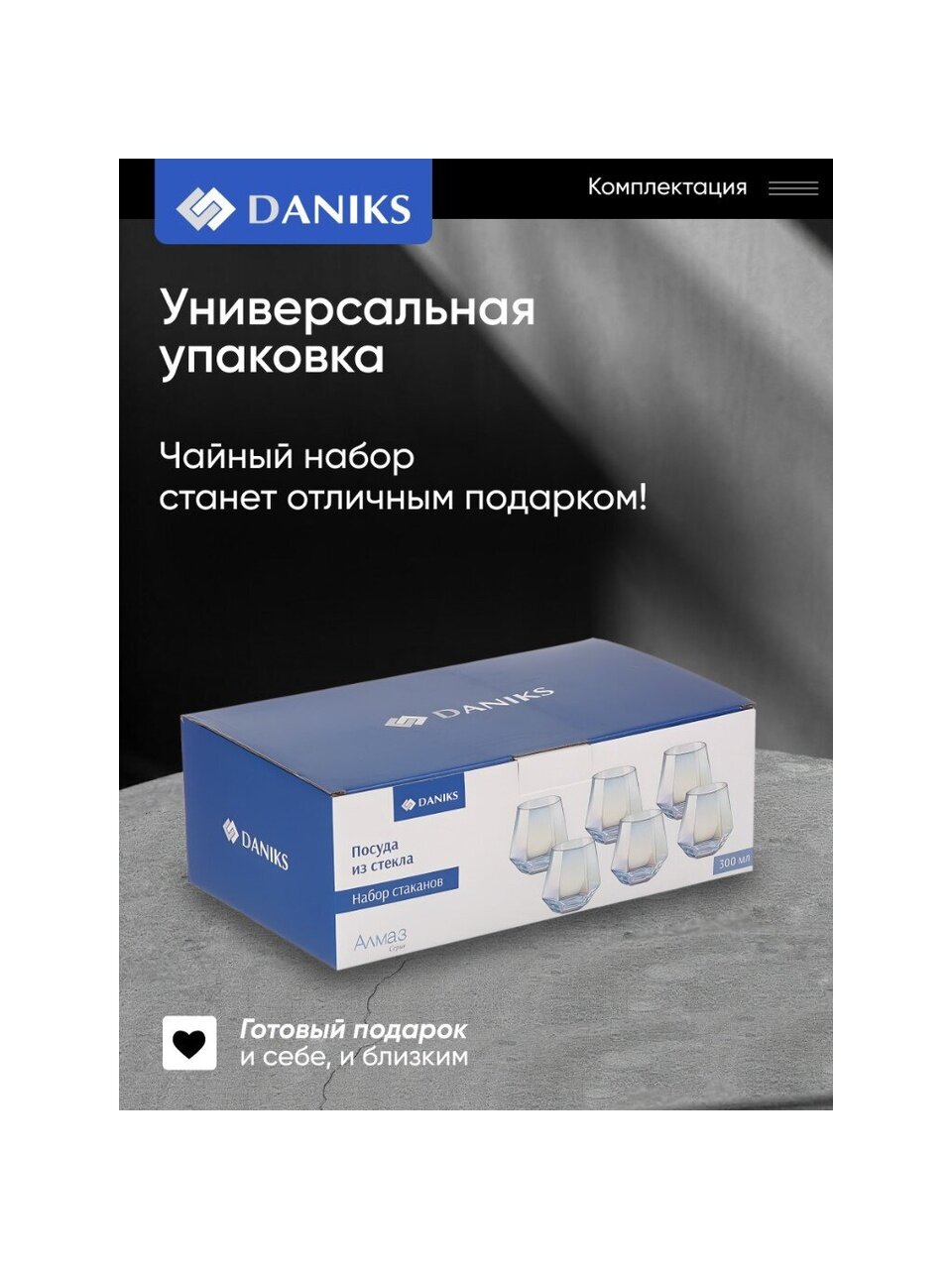 Набор стаканов Daniks Алмаз 300 мл — 6 стильных рокс-стаканов из стекла для воды и напитков. Универсальный выбор для дома, дачи или подарка.