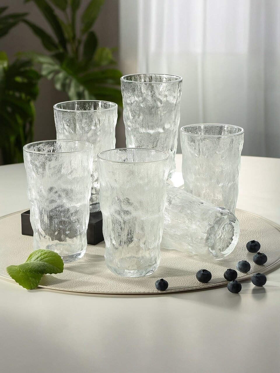 Набор стеклянных стаканов «Иней» (350 мл, 6 шт.) — это современный выбор для тех, кто ищет недорогие, но стильные стаканы для повседневного использования или сервировки праздничного стола. Прозрачное стекло с оригинальной текстурой создает эффект лёгкого инея, что делает эти стаканы заметным акцентом в любой сервировке. Благодаря универсальному объёму 350 мл они подходят как для воды и сока, так и для прохладительных напитков, что особенно актуально для дачи или семейного ужина.