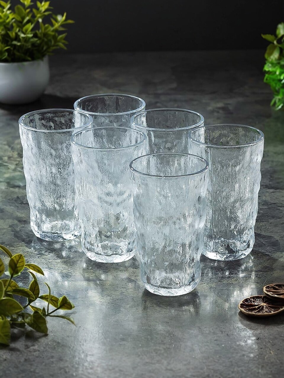 - Оптимальный объём 350 мл, прочное стекло, набор из 6 стаканов — удобно для семьи или гостей