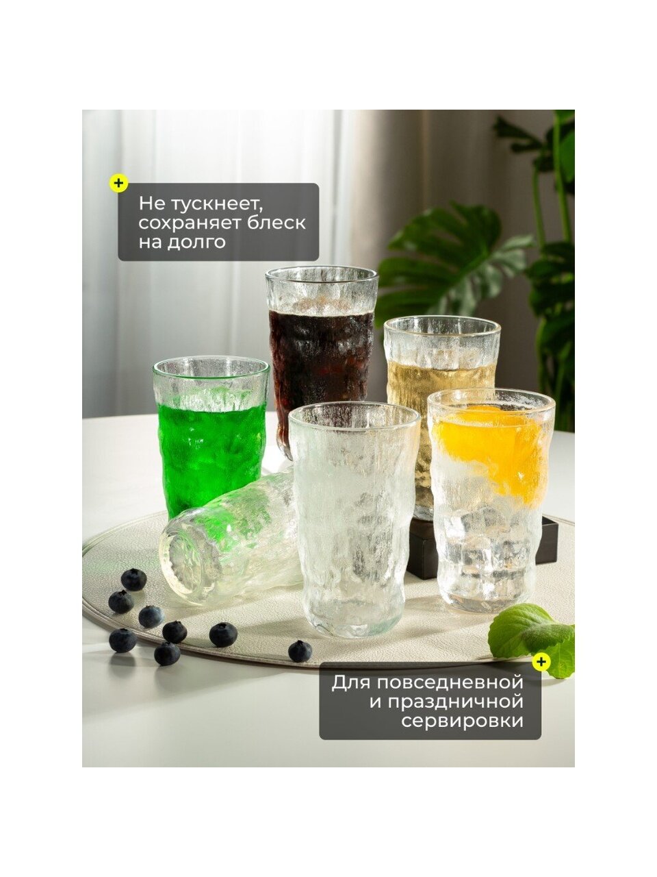 Набор стаканов 350 мл из стекла «Иней», 6 штук — универсальное решение для дома и дачи: стиль, прочность, выгодная цена.