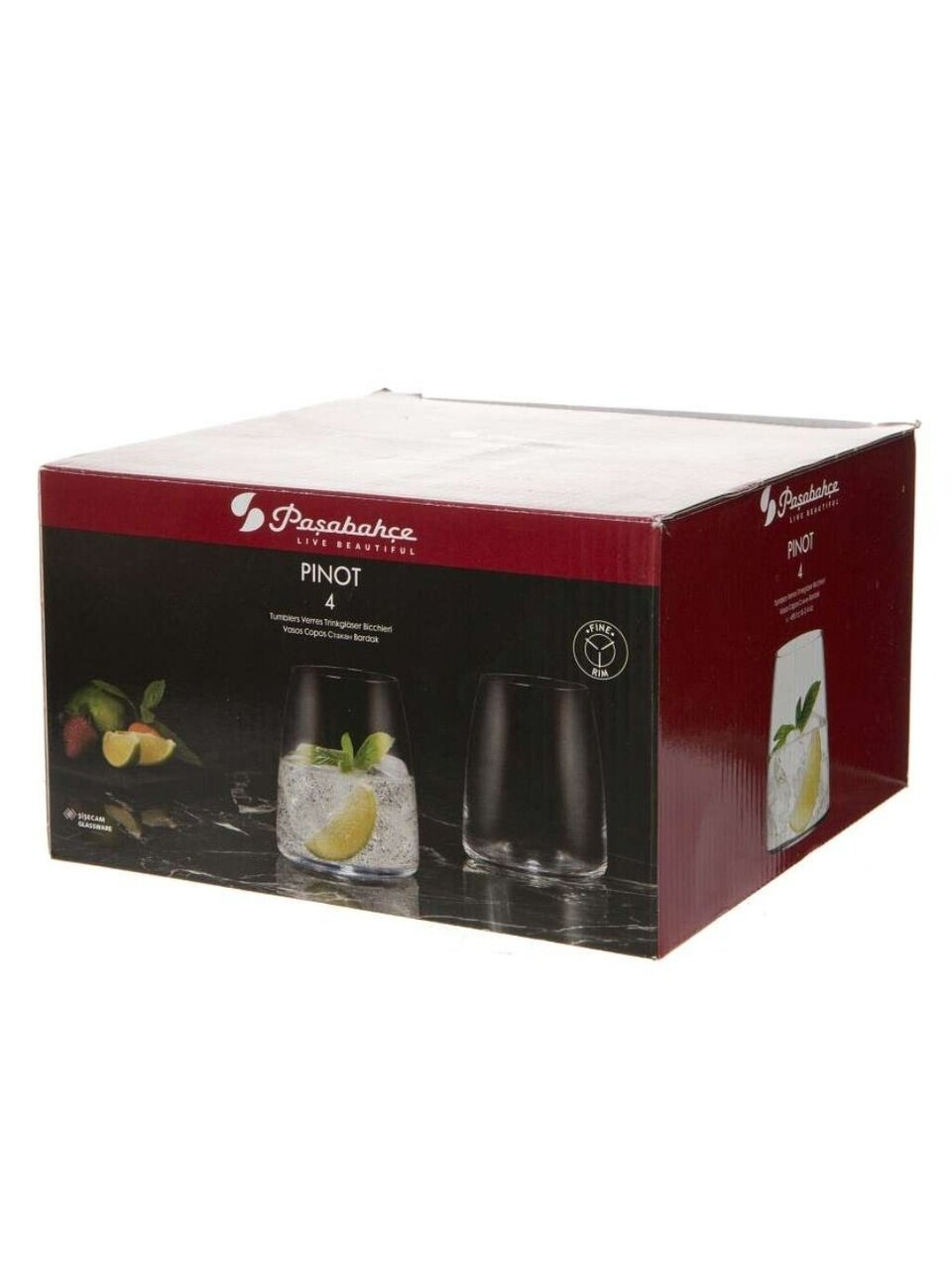 Стаканы Pasabahce Pinot 495 мл — прочное стекло, универсальный объём и стиль для воды и виски. Набор 4 шт. по выгодной цене — идеальный выбор для дома и подарка.