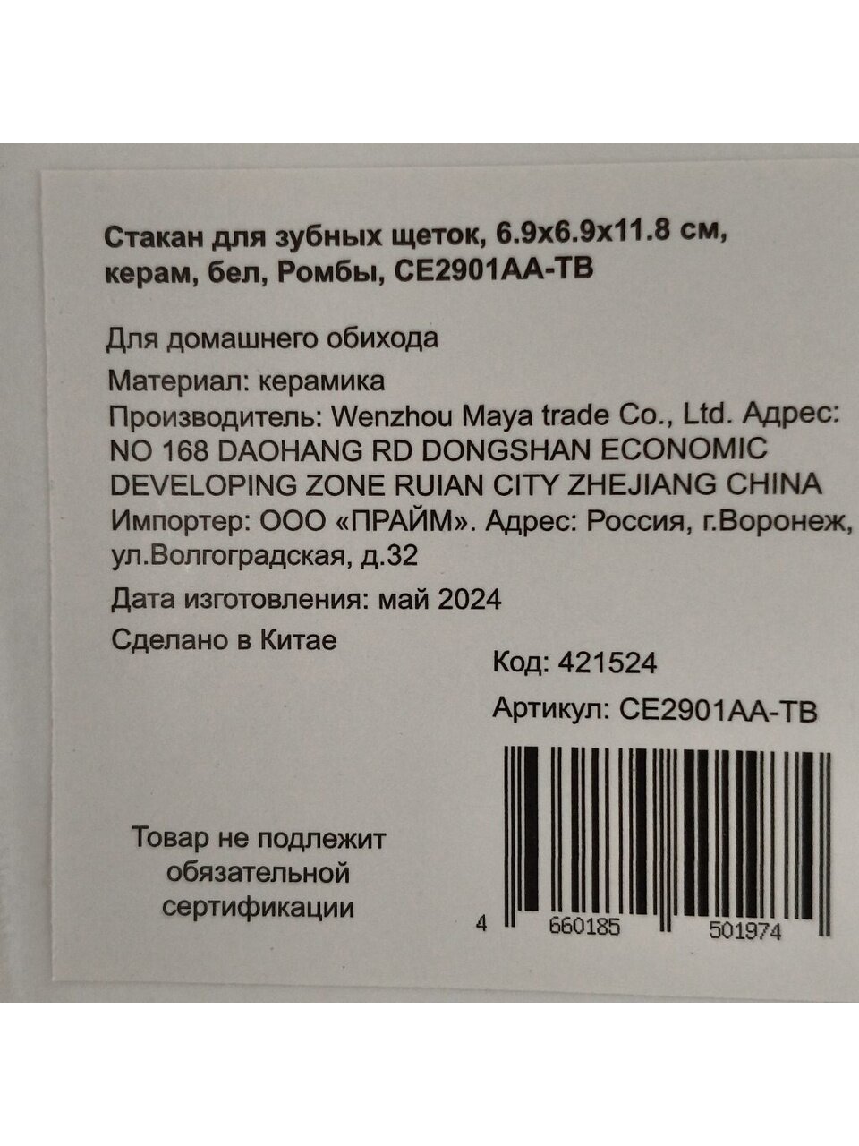 Вы можете приобрести «Стакан для зубных щеток, 6.9х6.9х11.8 см, керамика, белый, Ромбы, CE2901AA-TB» и другие товары в нашем интернет-магазине в Нижнем Новгороде по низким ценам и с бесплатным самовывозом.