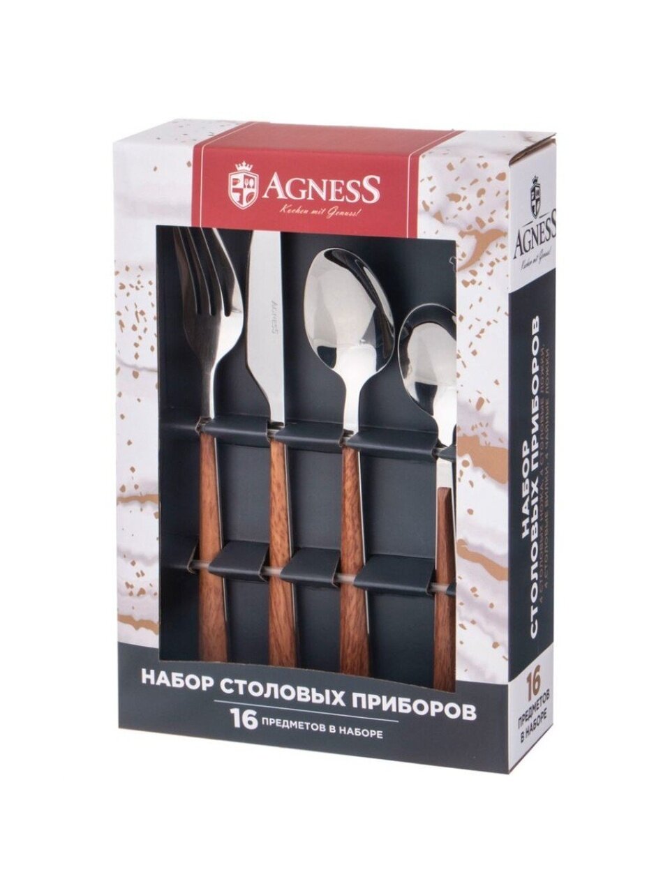 Подарочный набор столовых приборов Agness 16 предметов: стиль для вашей кухни, идеальный подарок, долговечная нержавеющая сталь, выгодная цена.