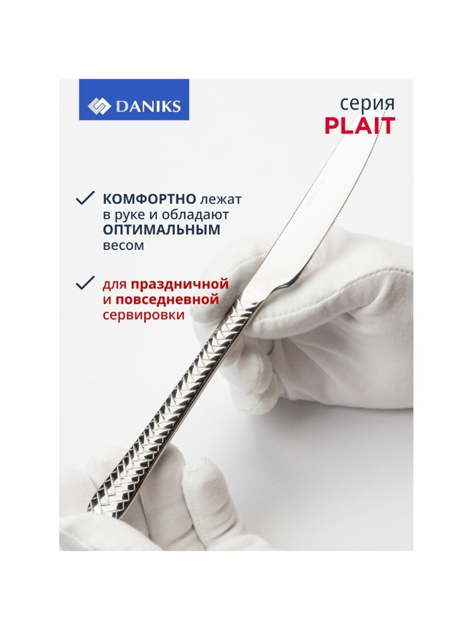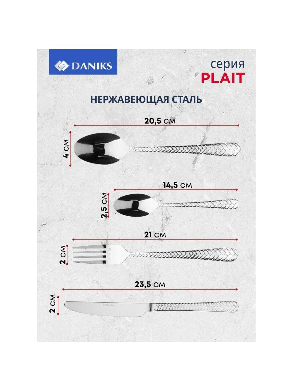 Как использовать набор Daniks Plait? Просто: он оптимален для ежедневного применения, подходит для сервировки обеденного и чайного стола, а также станет отличным вариантом для подарка на новоселье или юбилей. В сравнении с наборами из других материалов, нержавеющая сталь не впитывает запахи, не тускнеет и не требует сложного ухода.