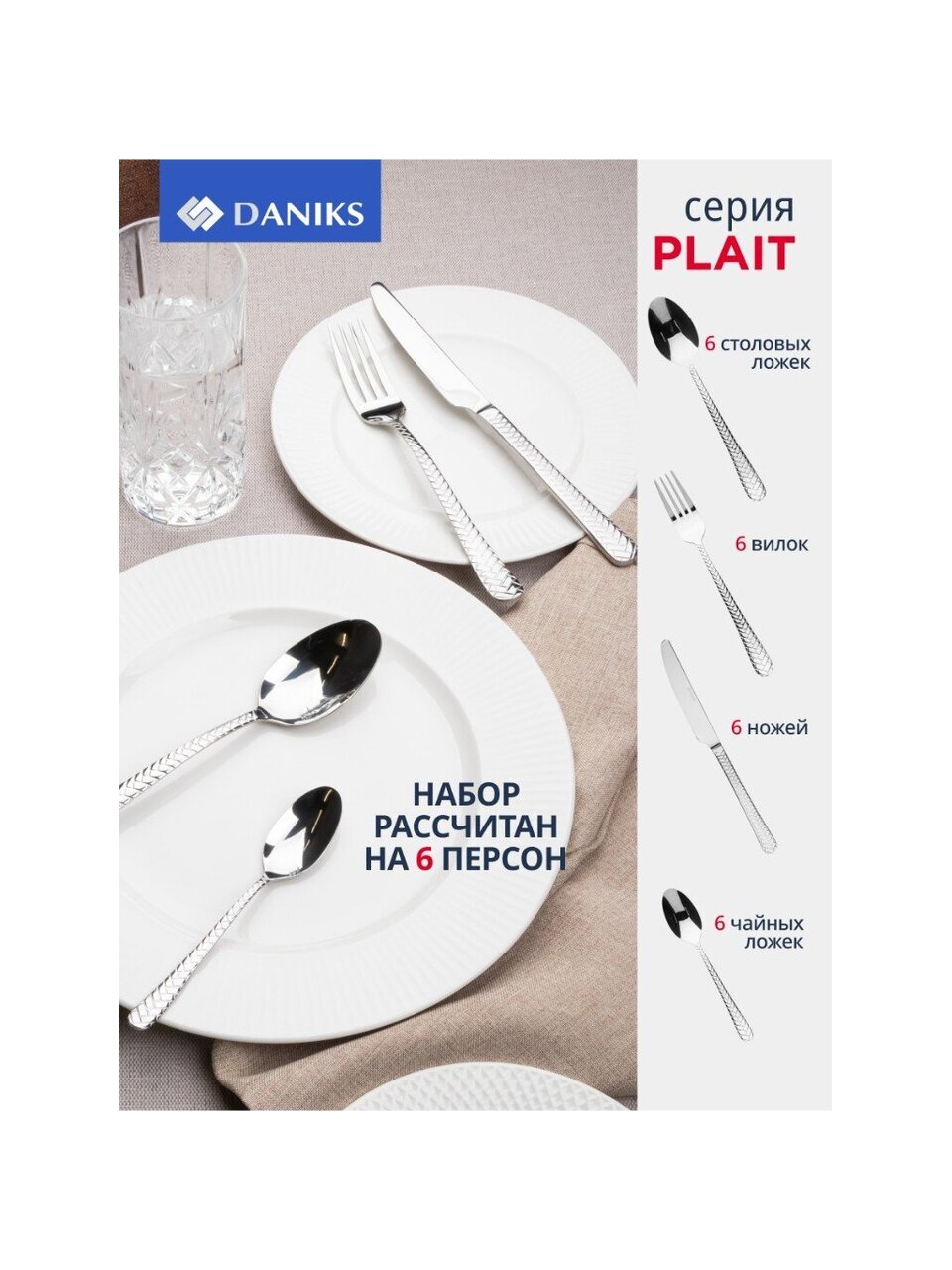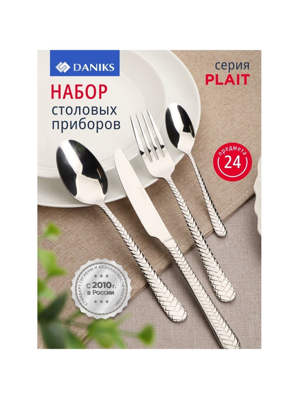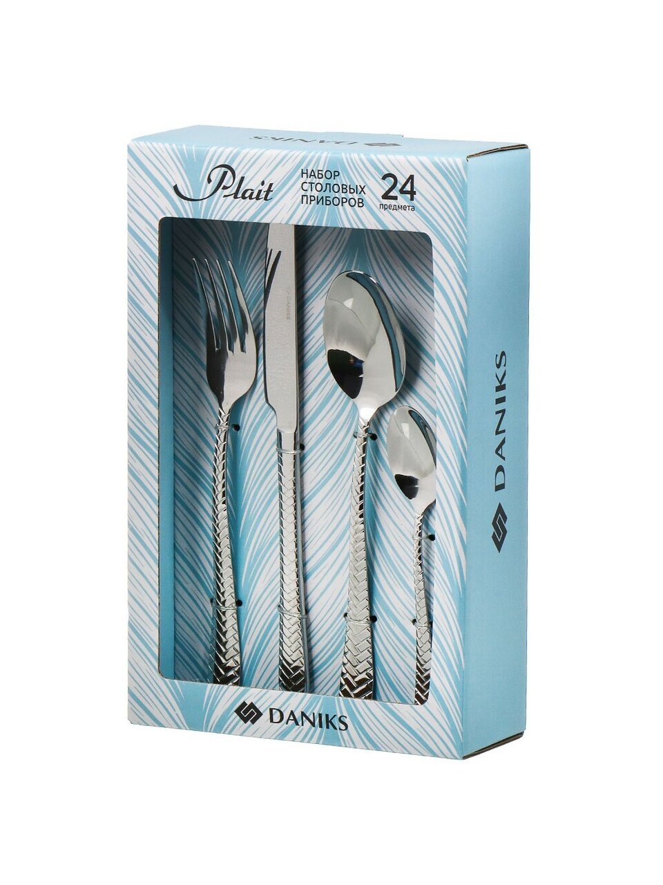 Набор столовых приборов Daniks Plait — 24 предмета из нержавеющей стали в подарочной упаковке: стиль для вашего стола и идеальный подарок без лишних хлопот.