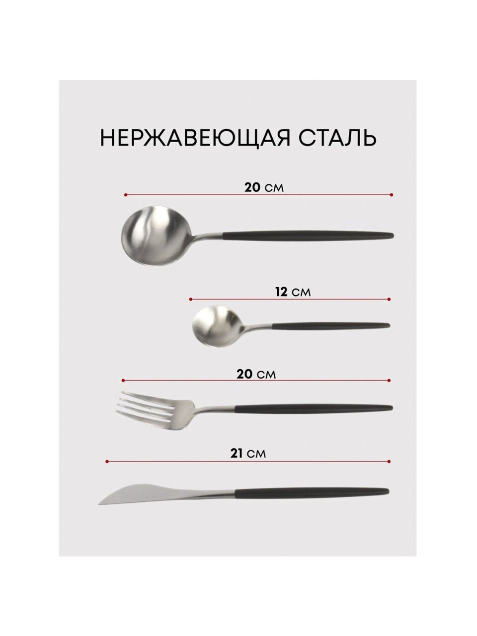Если вы ищете, какой набор выбрать для семьи или подарка, обратите внимание на эргономику и количество предметов. В этом комплекте всё продумано: длина приборов 21 см оптимальна для любого возраста, а черная расцветка гармонирует с современной сервировкой. Такой набор будет уместен как для ежедневных обедов, так и для праздничных ужинов.